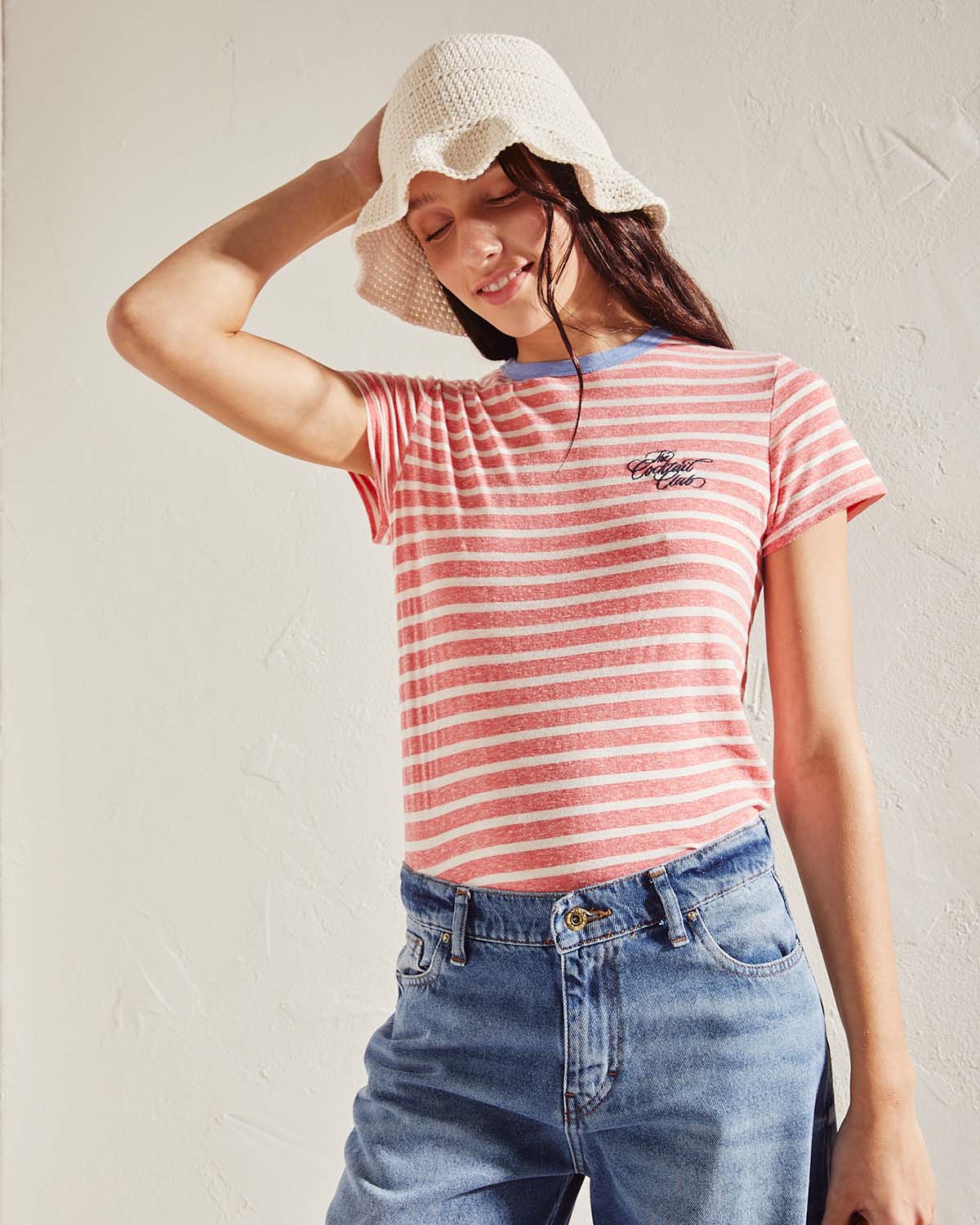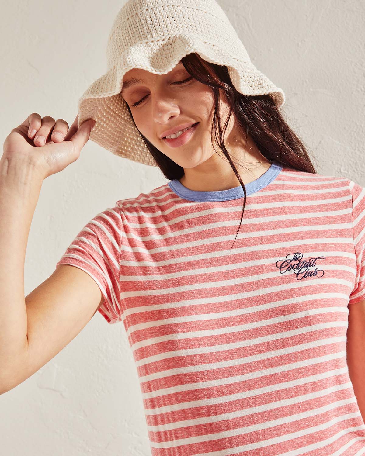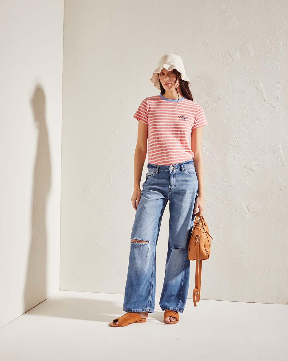 REMERA CONFECCIONADA EN DEVORÉ RAYADO. CALCE HOLGADO CON BORDADO EN FRENTE LATERAL A CONTRATONO