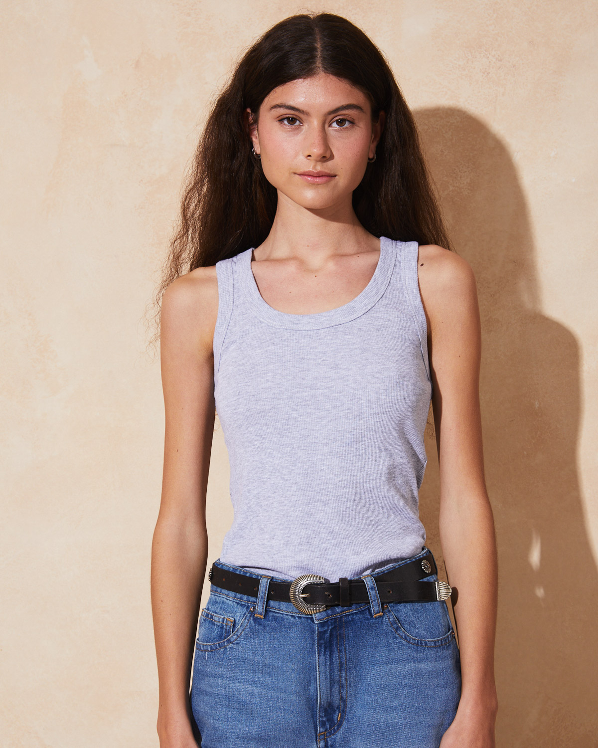 MUSCULOSA CONFECCIONADA EN MORLEY DE ALGODÓN. CALCE AL CUERPO, Y ESCOTE REDONDO.