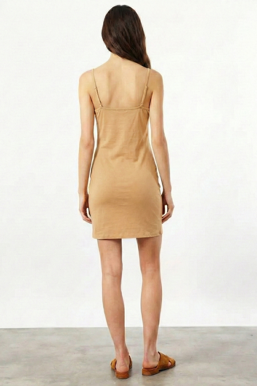 VISO REALIZADO EN 100% VISCOSA. DE CALCE AL CUERPO CON BRETELES FINOS Y FIJOS.