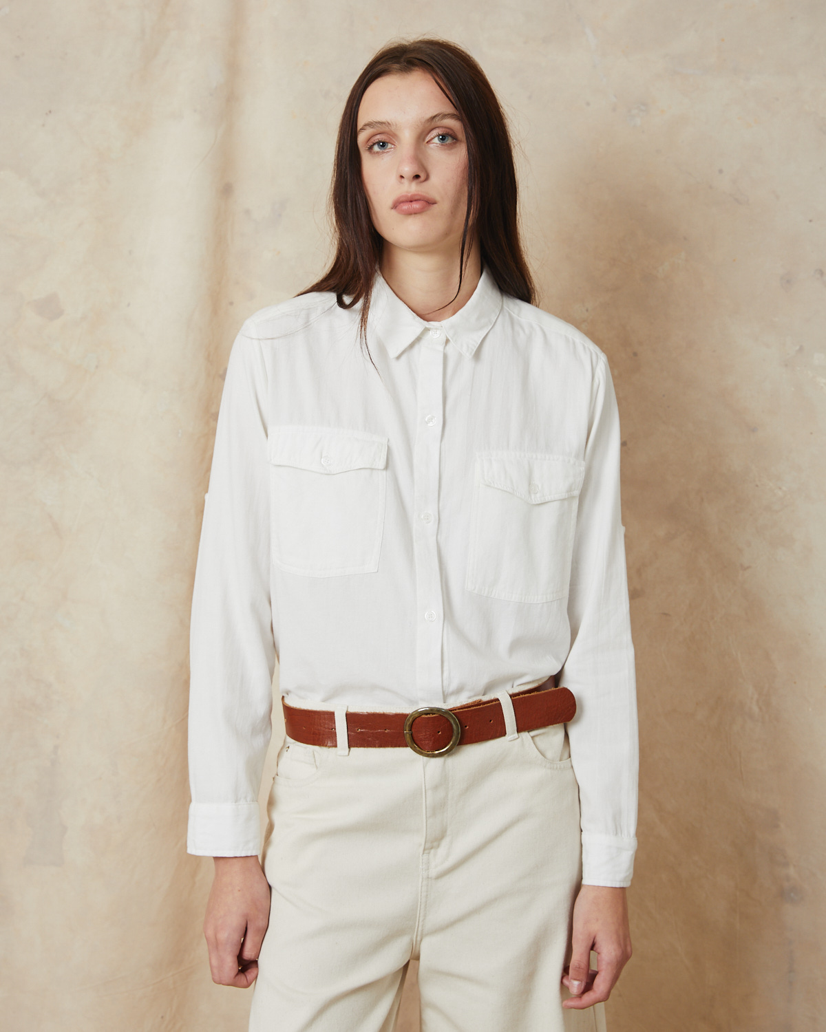 CAMISA CALCE REGULAR CONFECCIONADA EN ALGODON. CON BOLSILLOS PLAQUE EN DELANTERO. Y PRESILLAS OCULTAS EN MANGAS PARA ARREMANGAR.