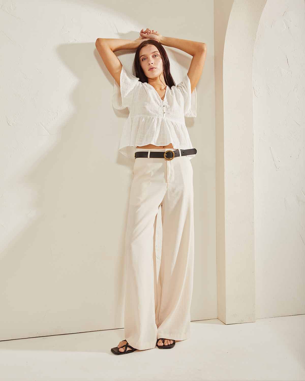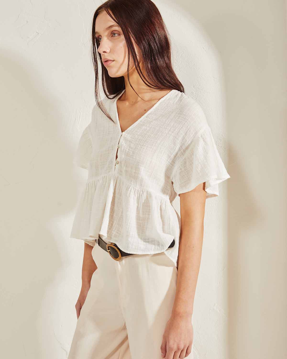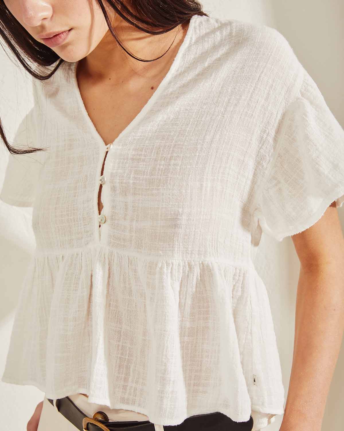 CAMISOLA CONFECCIONADA EN 100% ALGODON. CALCE AMPLIO CON ESCOTE EN V Y BOTONES NACARADOS.