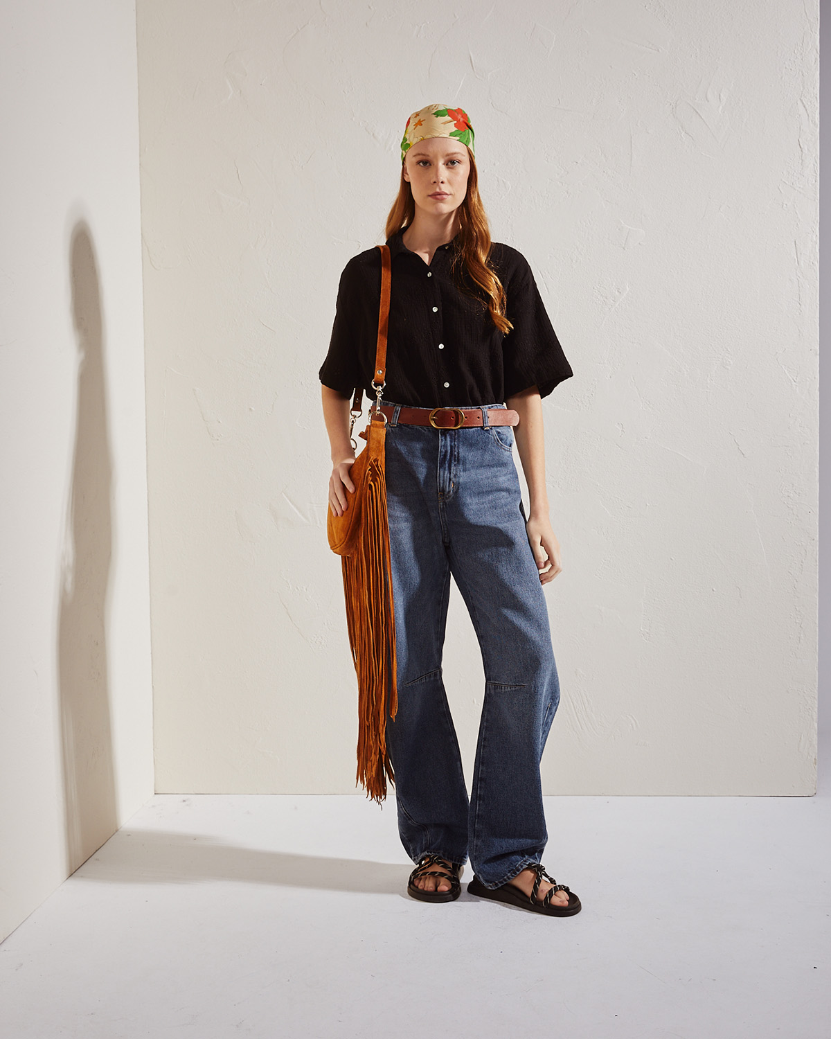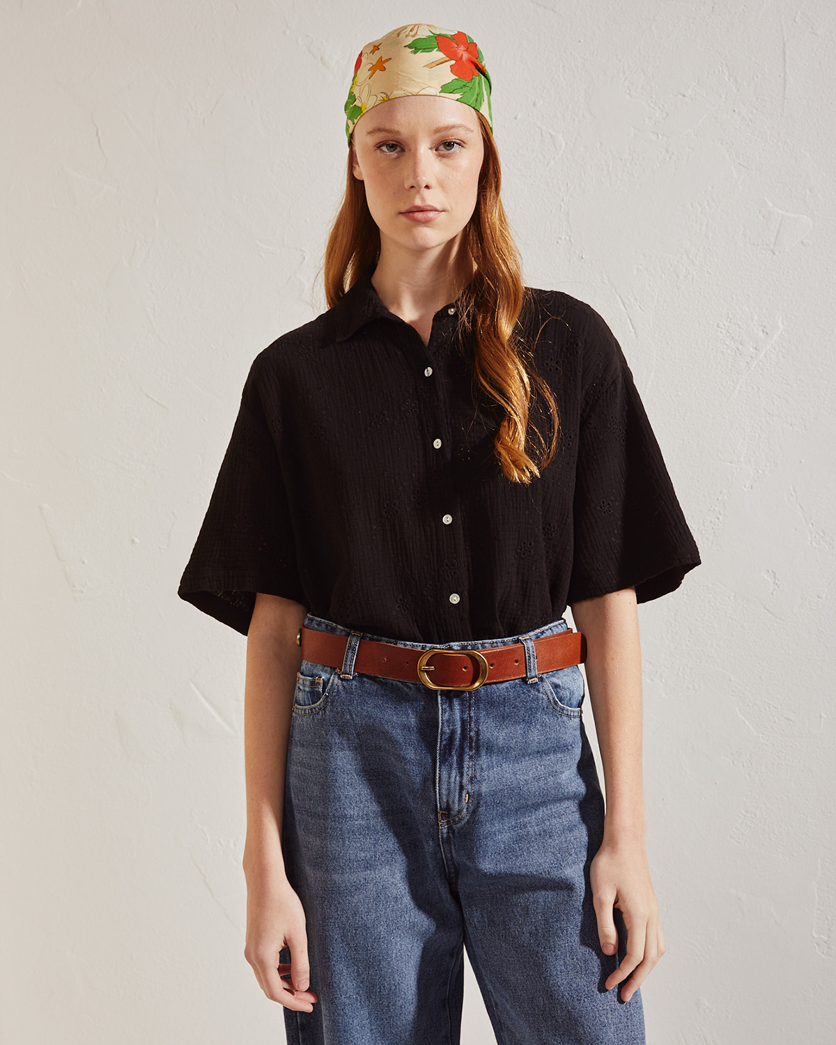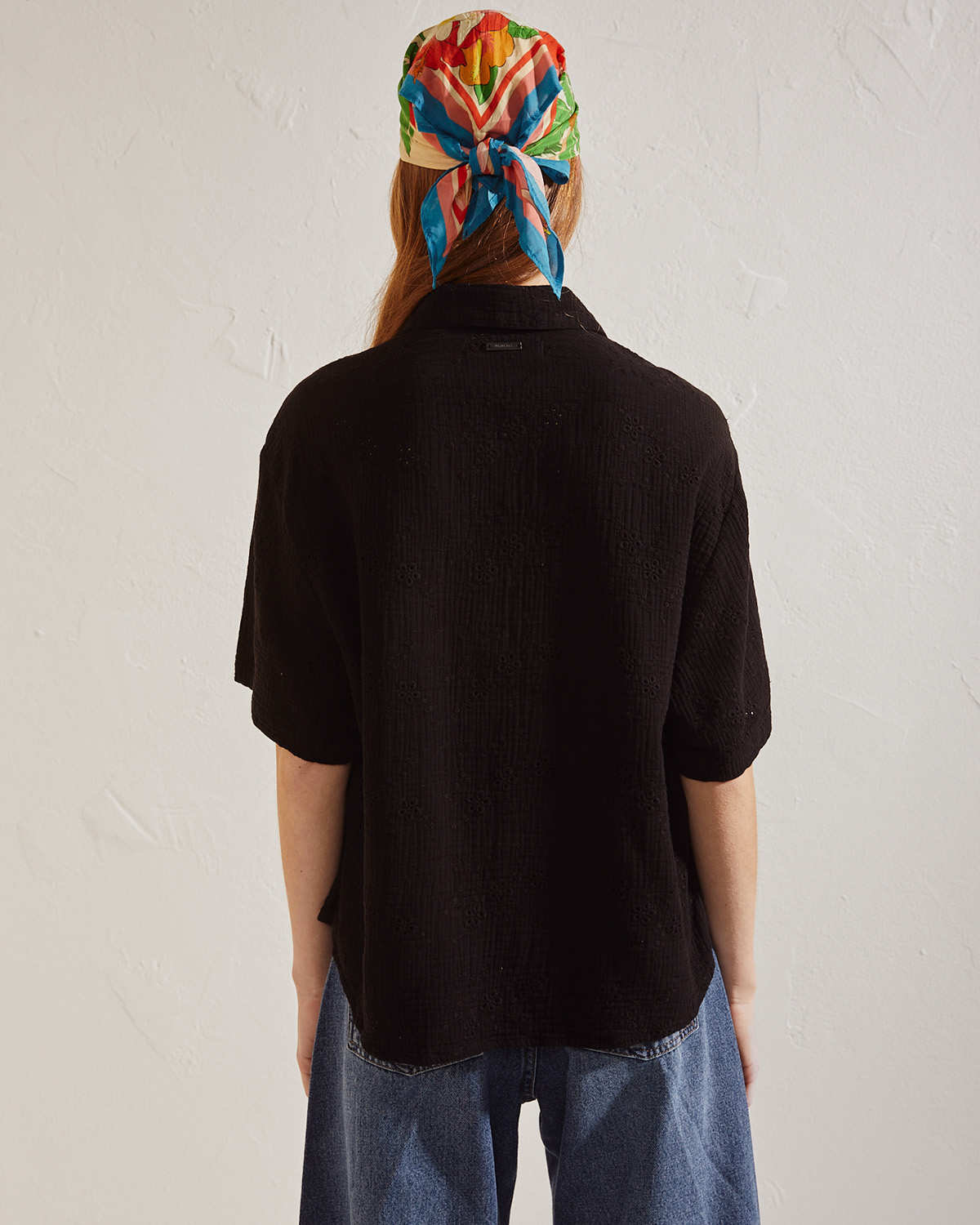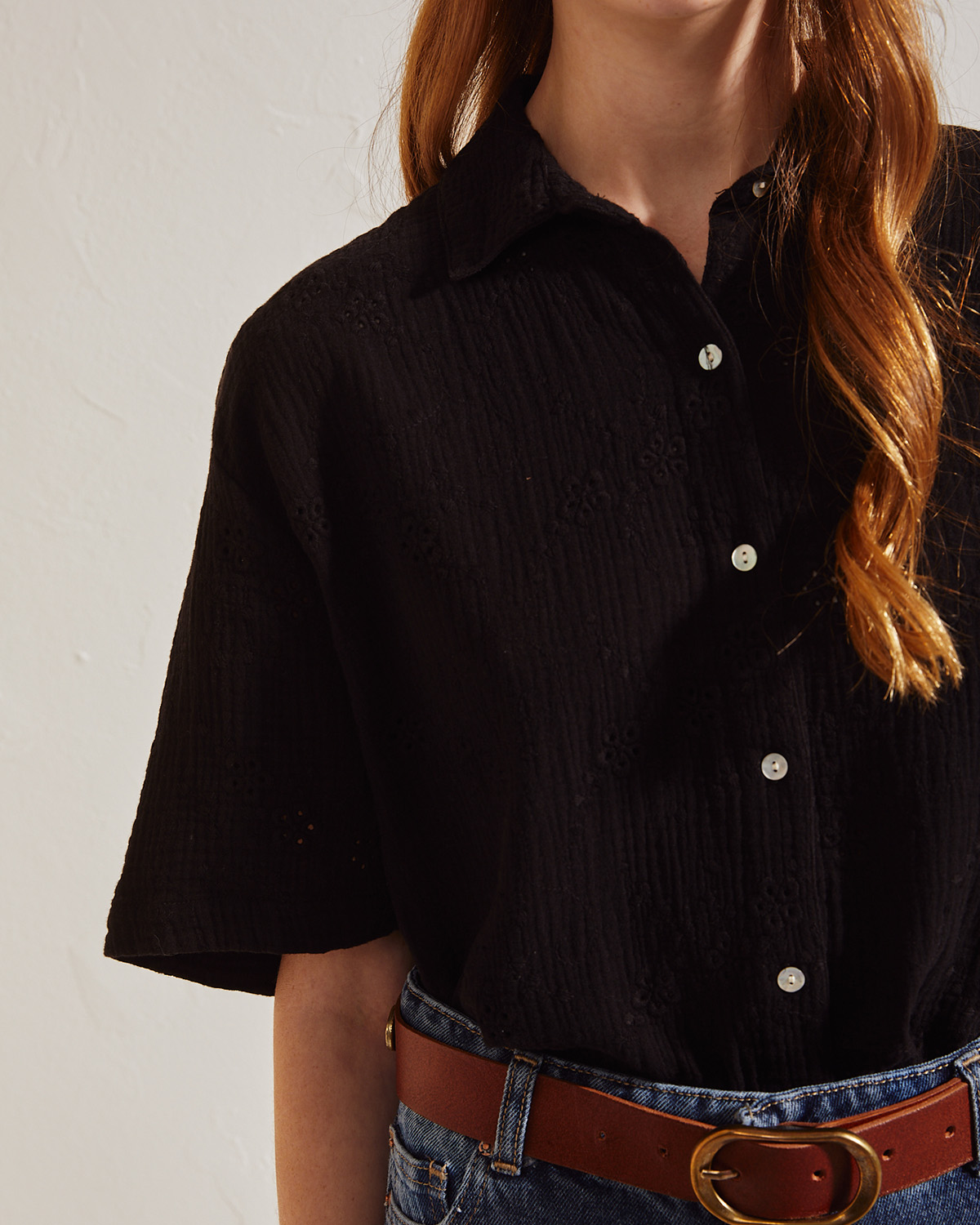 CAMISA MANGA CORTA DE CALCE AMPLIO CONFECCIONADA EN BRODERIE DE GASA DOBLE.