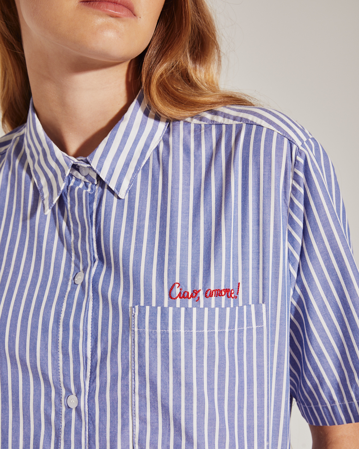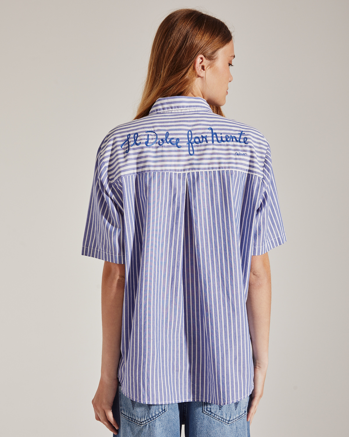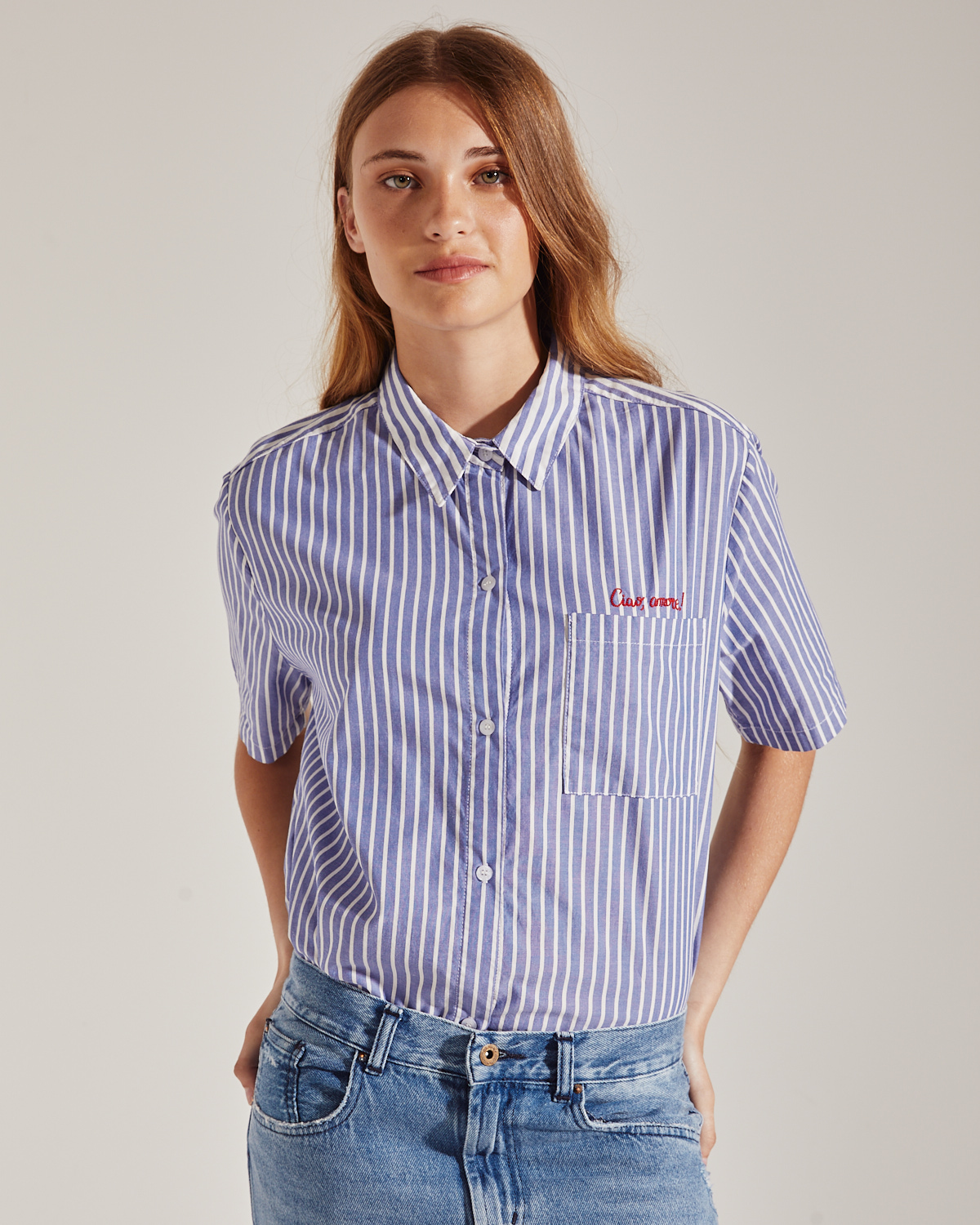 CAMISA CONFECCIONADO EN TEJIDO PLANO RAYADO CON COMBINACIÓN DE RAYAS. CALCE AMPLIO Y MANGAS CORTAS.