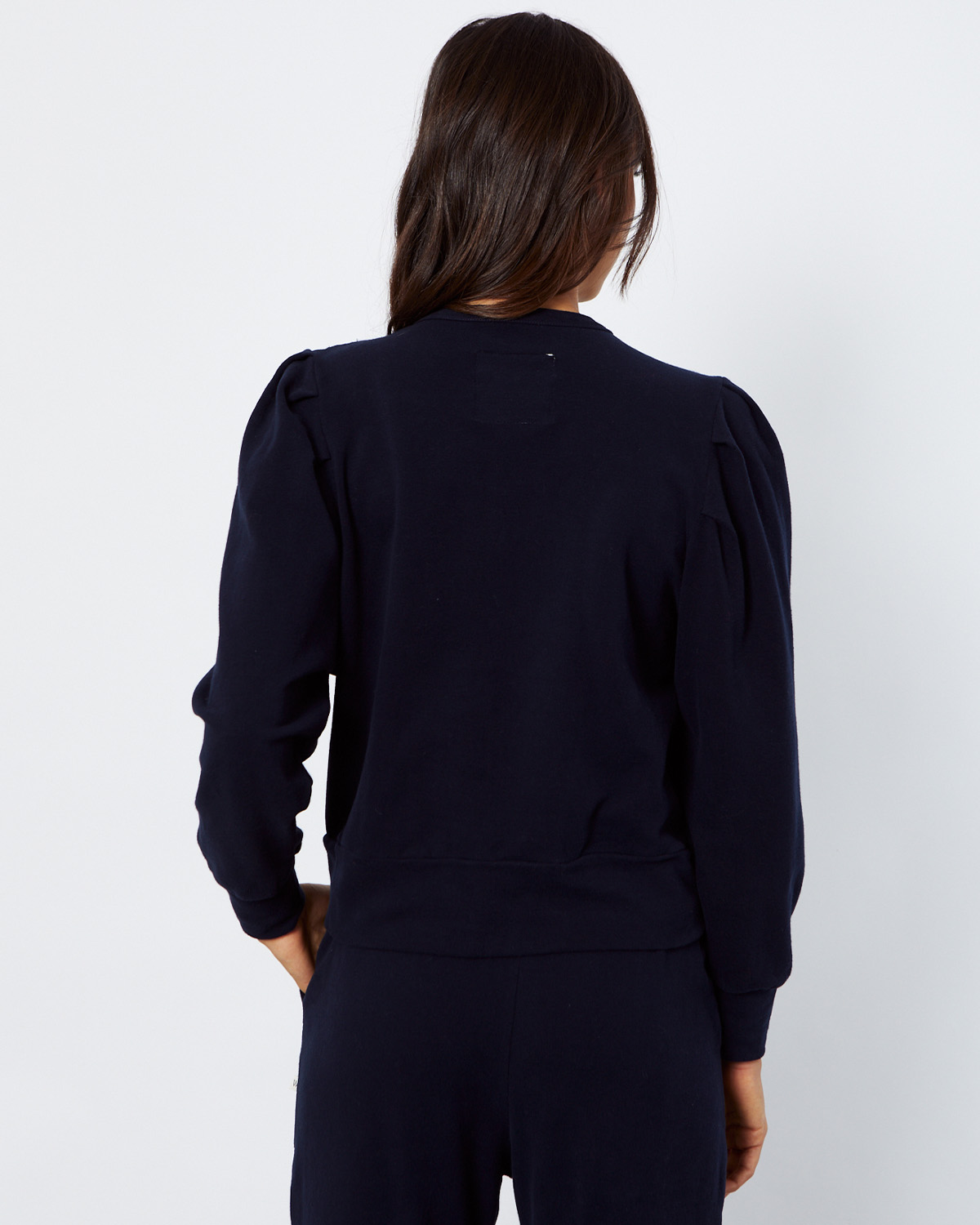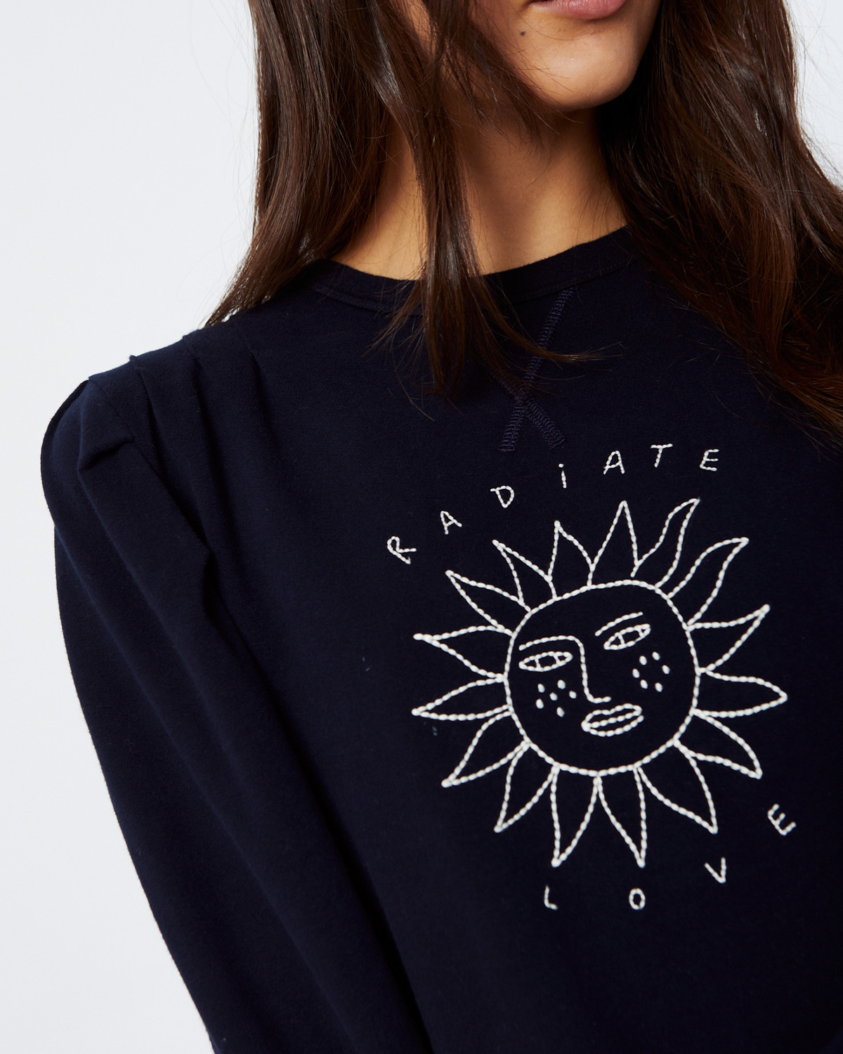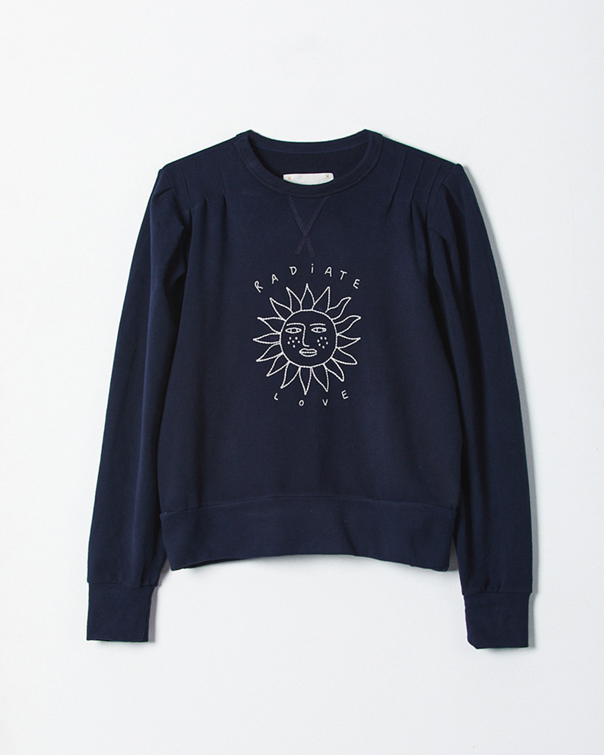 BUZO REALIZADO EN RUSTICO, CON FRUNCES EN COPA DE MANGA. POSEE BORDADO