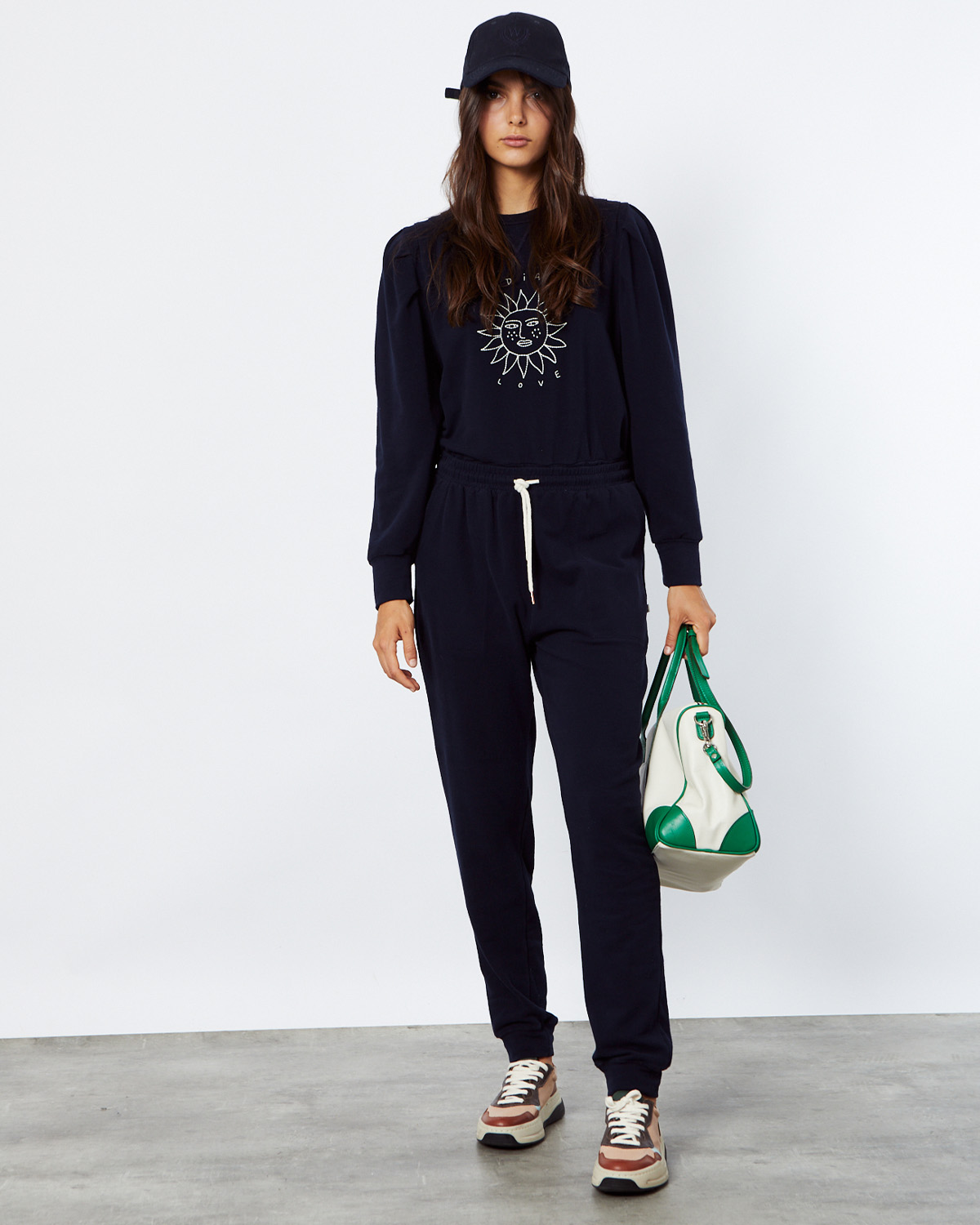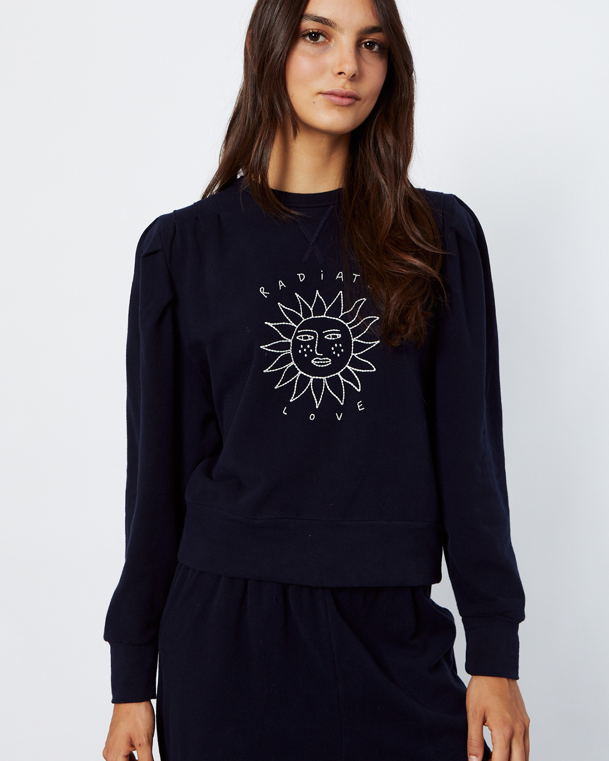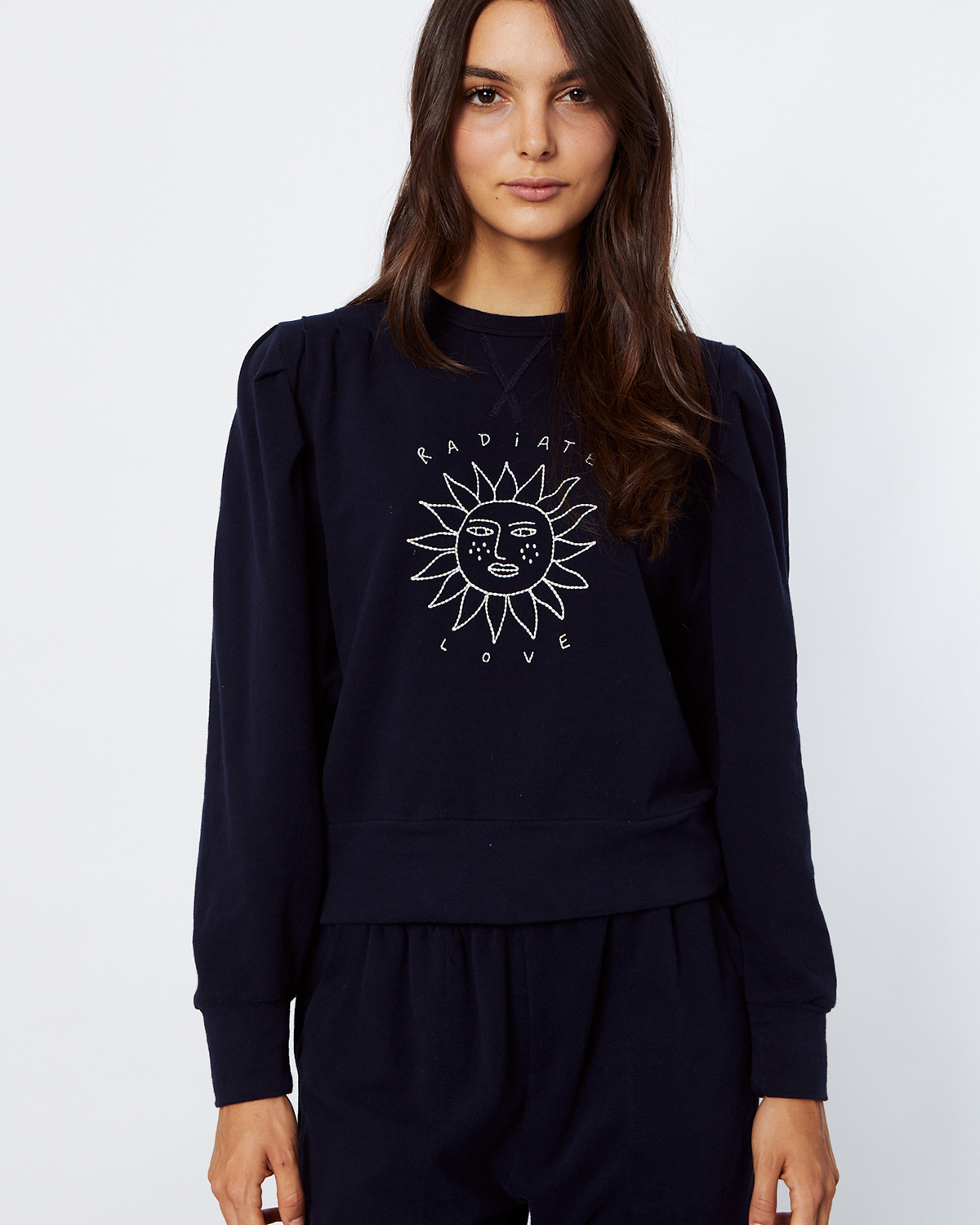 BUZO REALIZADO EN RUSTICO, CON FRUNCES EN COPA DE MANGA. POSEE BORDADO