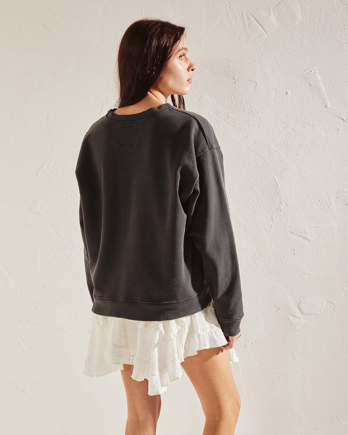 BUZO CONFECCIONADO EN FRENCH TERRY PERUANO CON ESTAMPA EN SU DELANTERO. TIENE LAVADO DESGASTADO. SU CALCE ES SEMI HOLGADO.