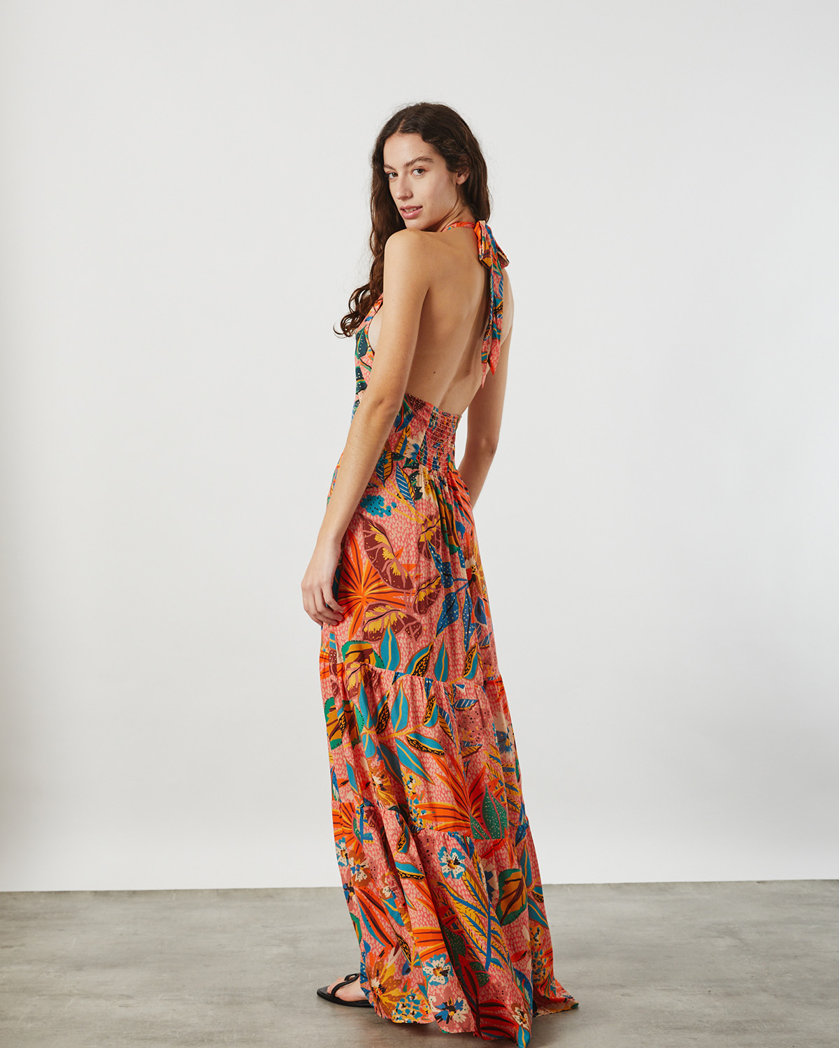 VESTIDO CONFECCIONADO EN VISCOSA CON LAZO EN CUELLO PARA ATAR. CALCE AMPLIO.