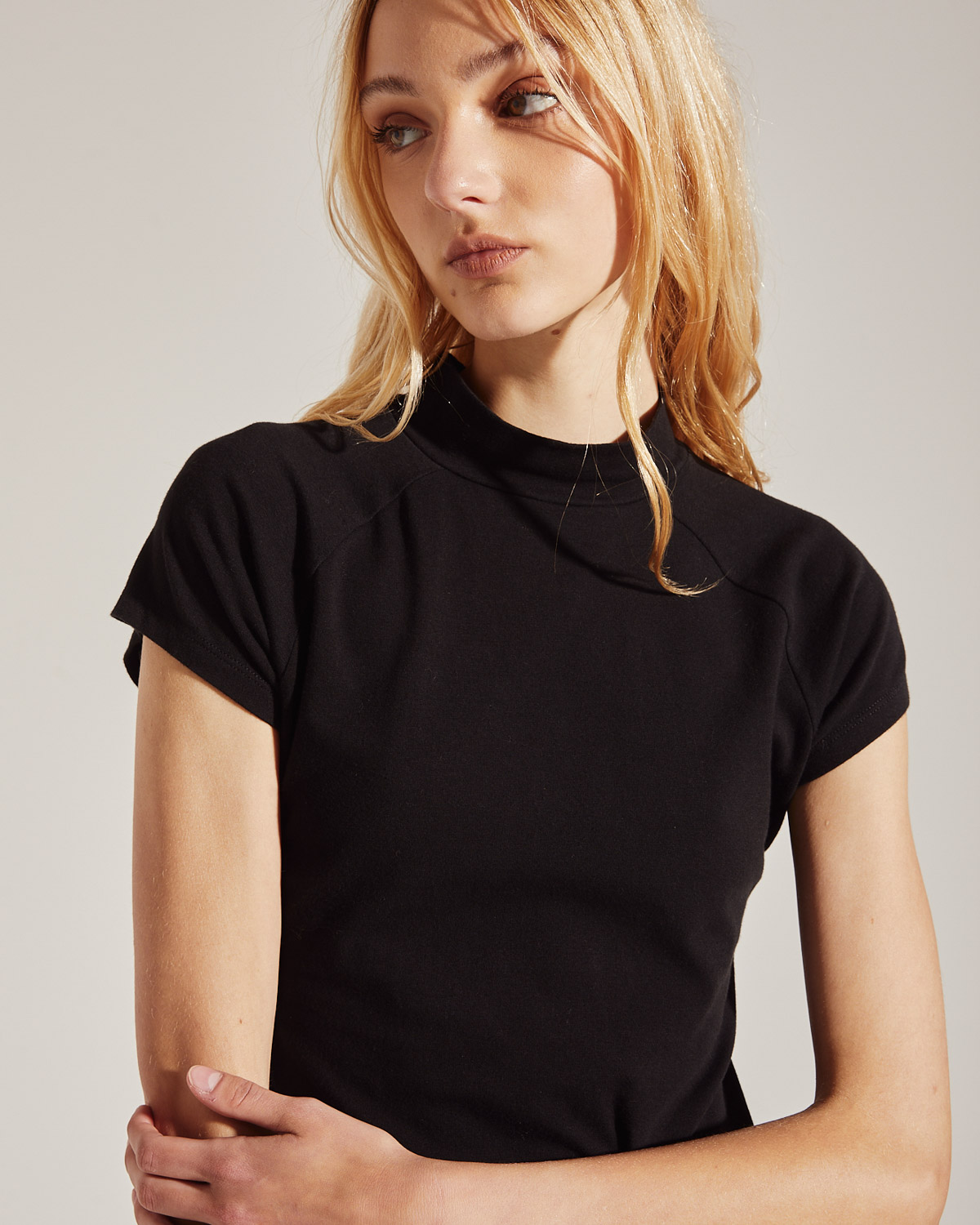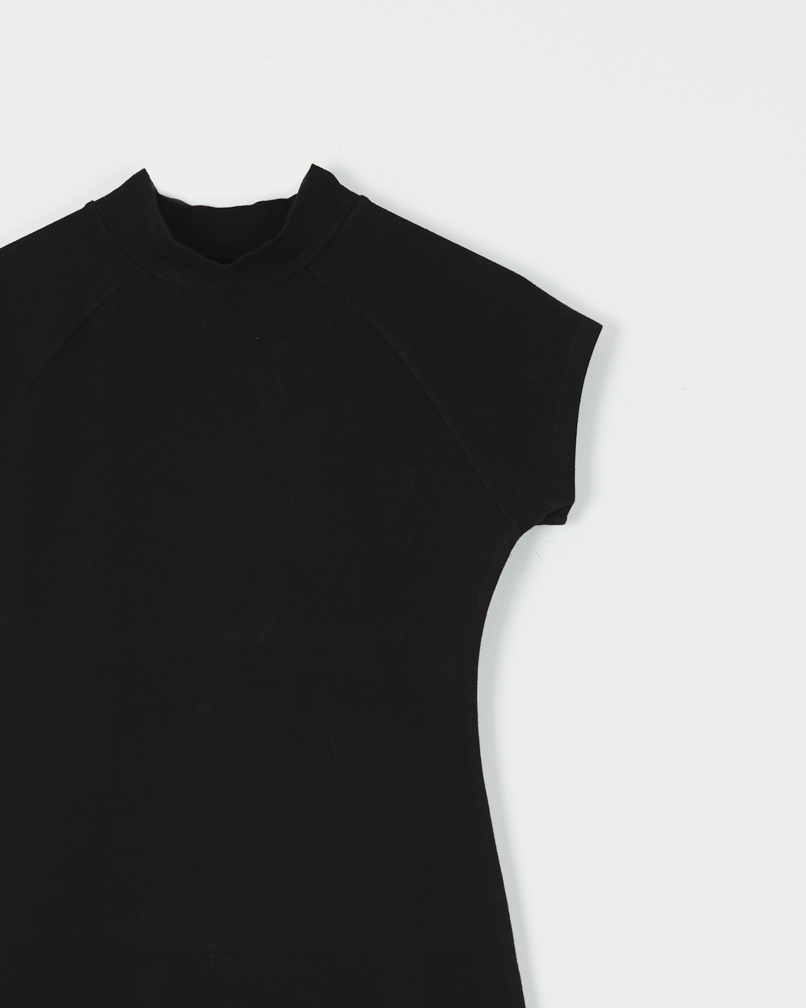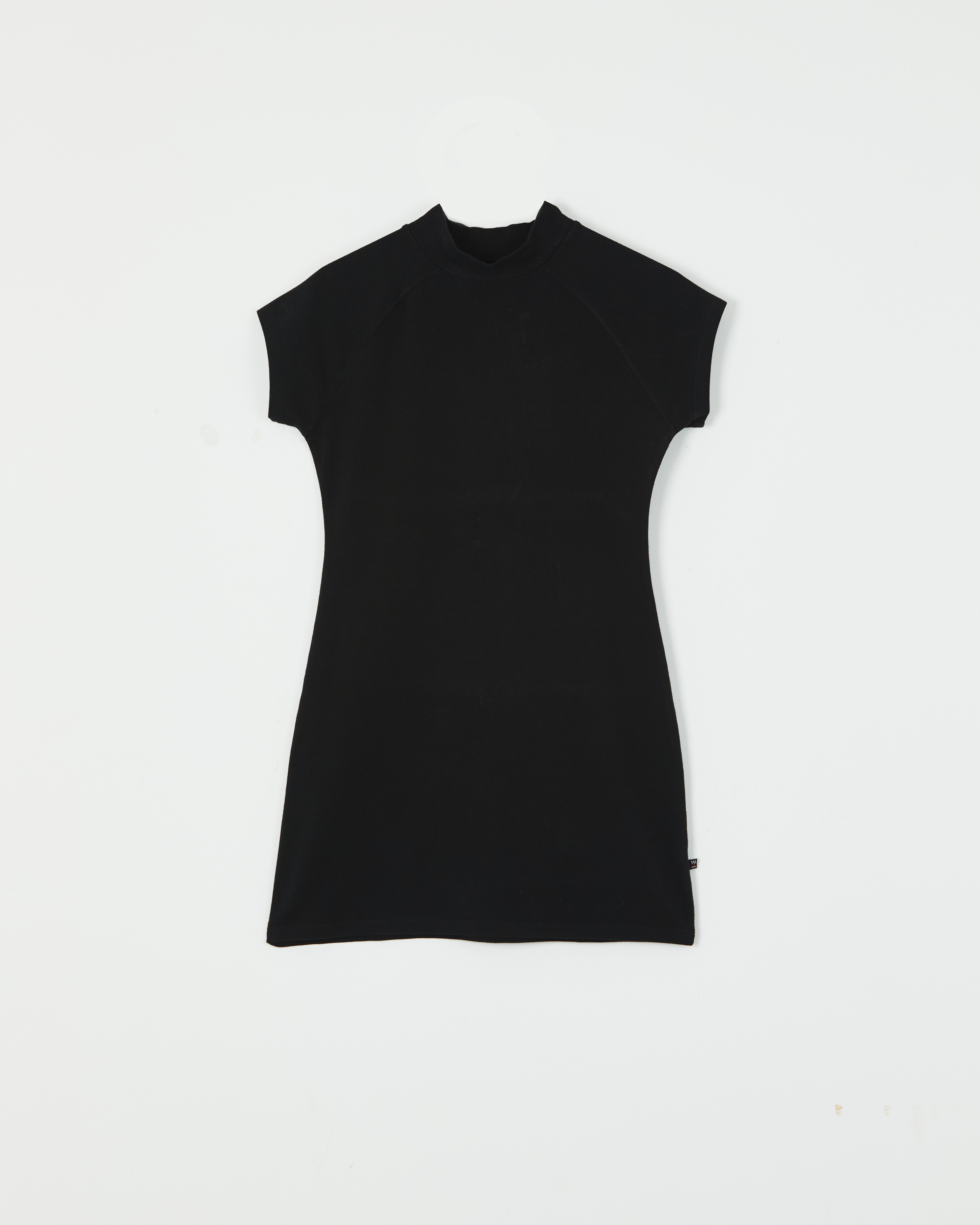 VESTIDO CORTO CONFECCIONADO CON JERSEY DE ALGODÓN CON CUELLO ALTO Y MANGAS RANGLAN.