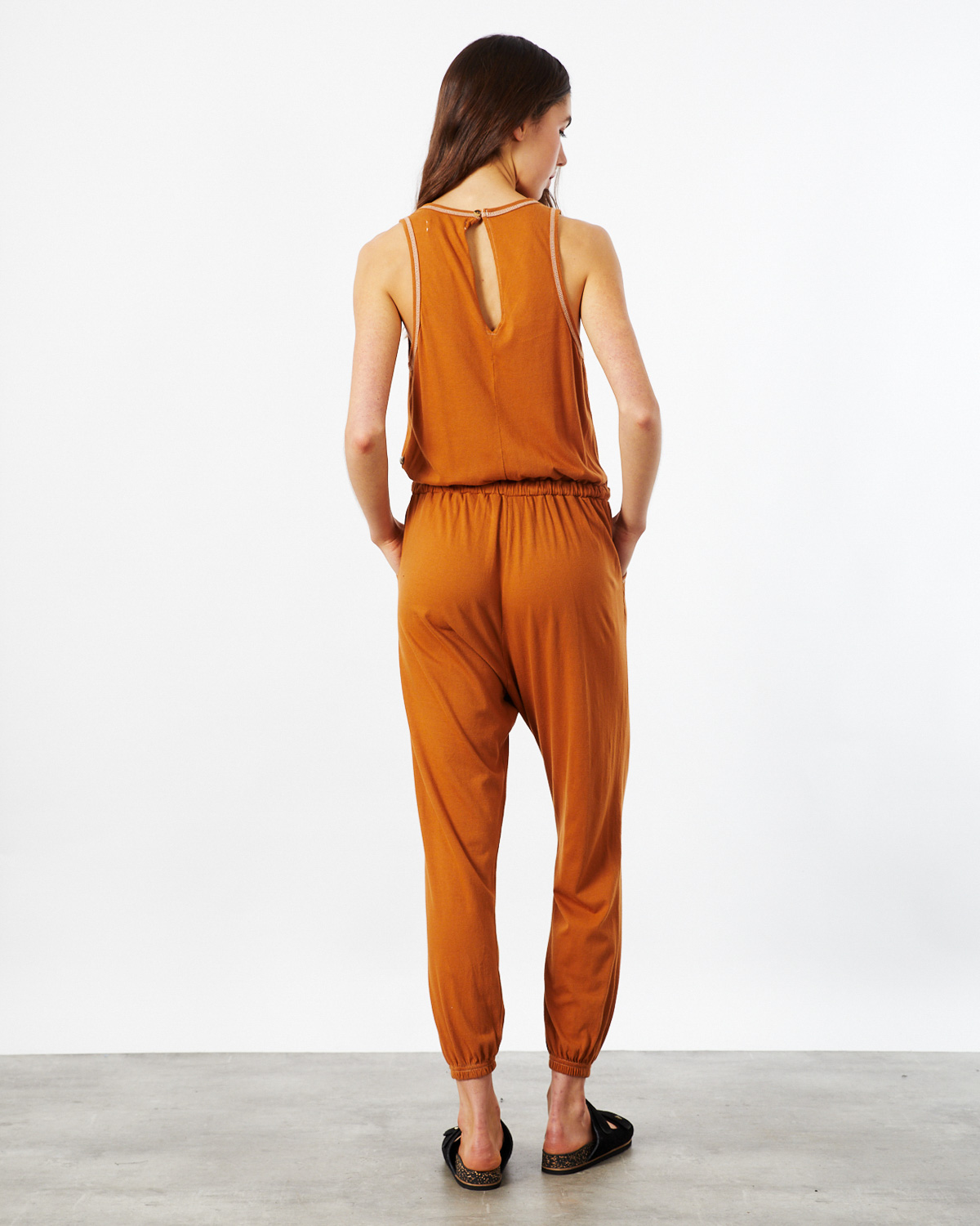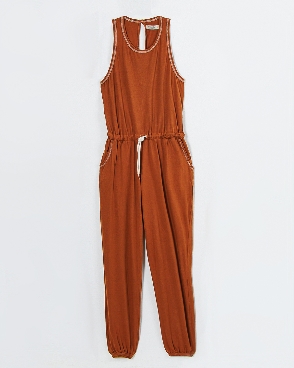 MONO CONFECCIONADO EN JERSEY 100% ALGODÓN. CALCE SUELTO Y CÓMODO. ACCESO POR PARTE SUPERIOR, CON BOTÓN EN ESPALDA. ELÁSTICO EN CINTURA CON CORDÓN REGULABLE. BOLSILLOS LATERALES. PUÑOS FRUNCIDOS CON ELÁSTICO.