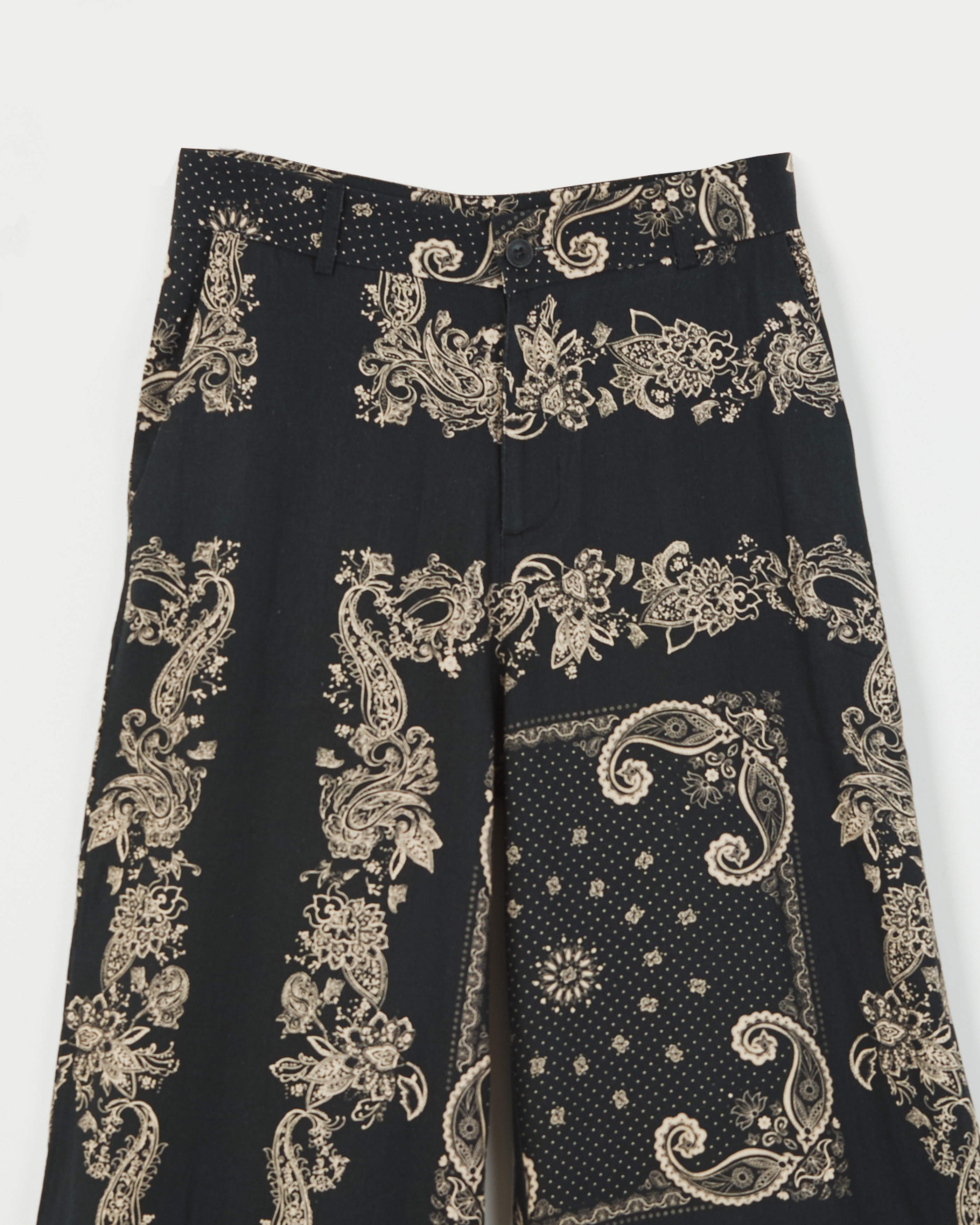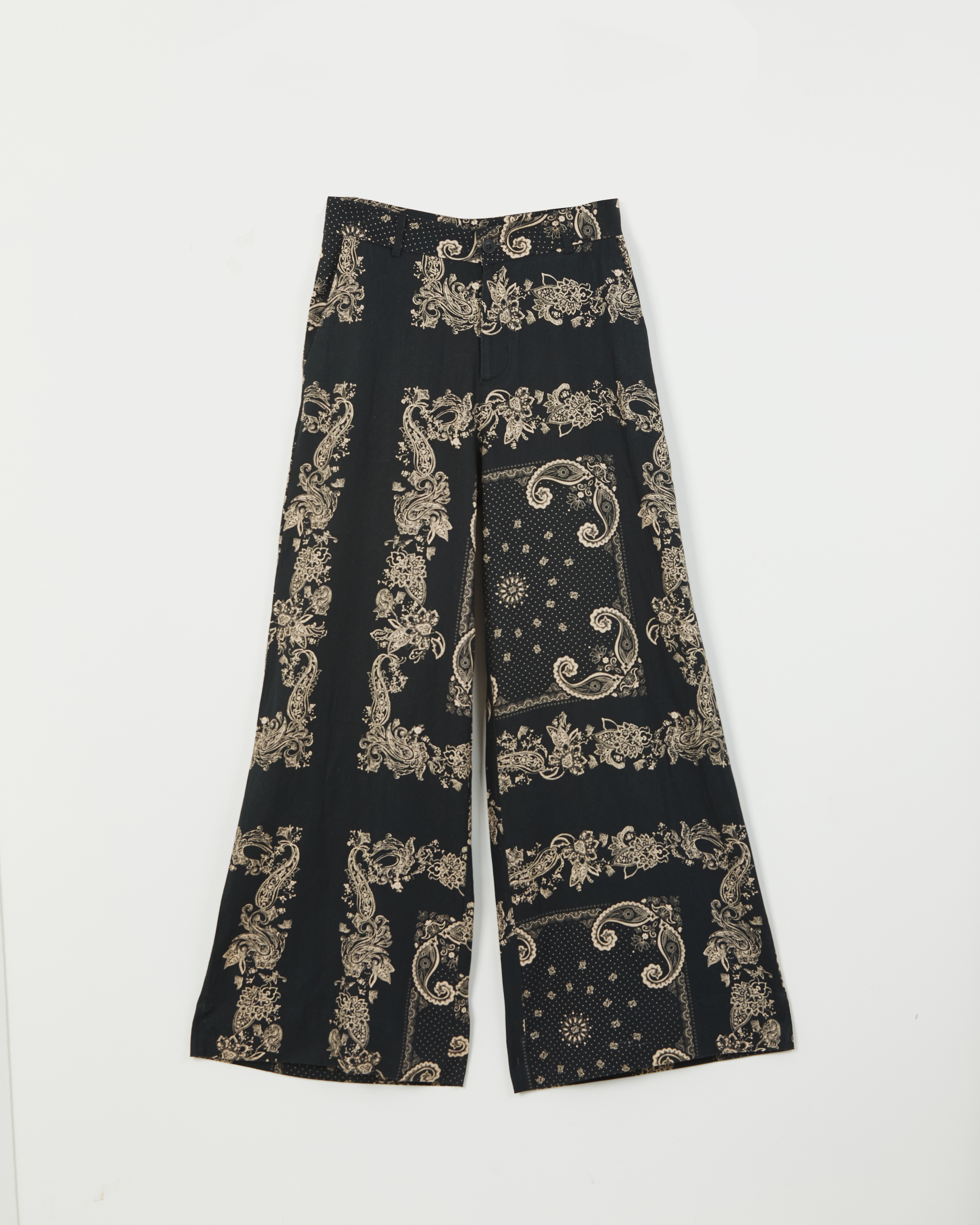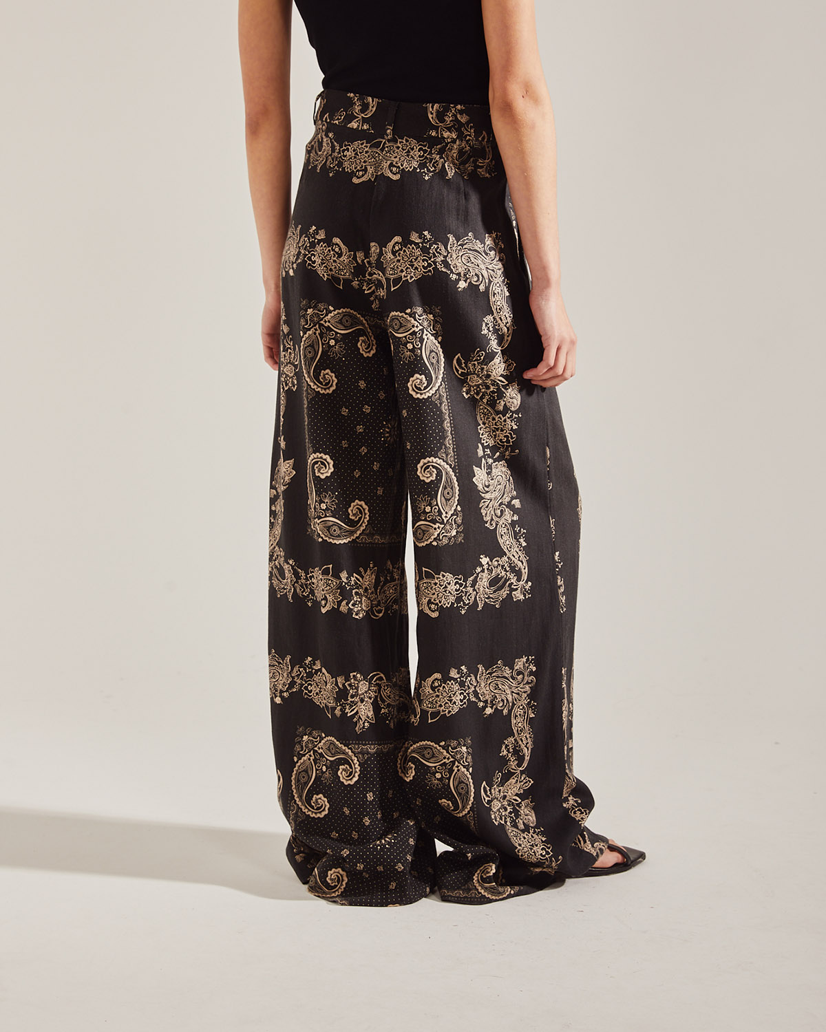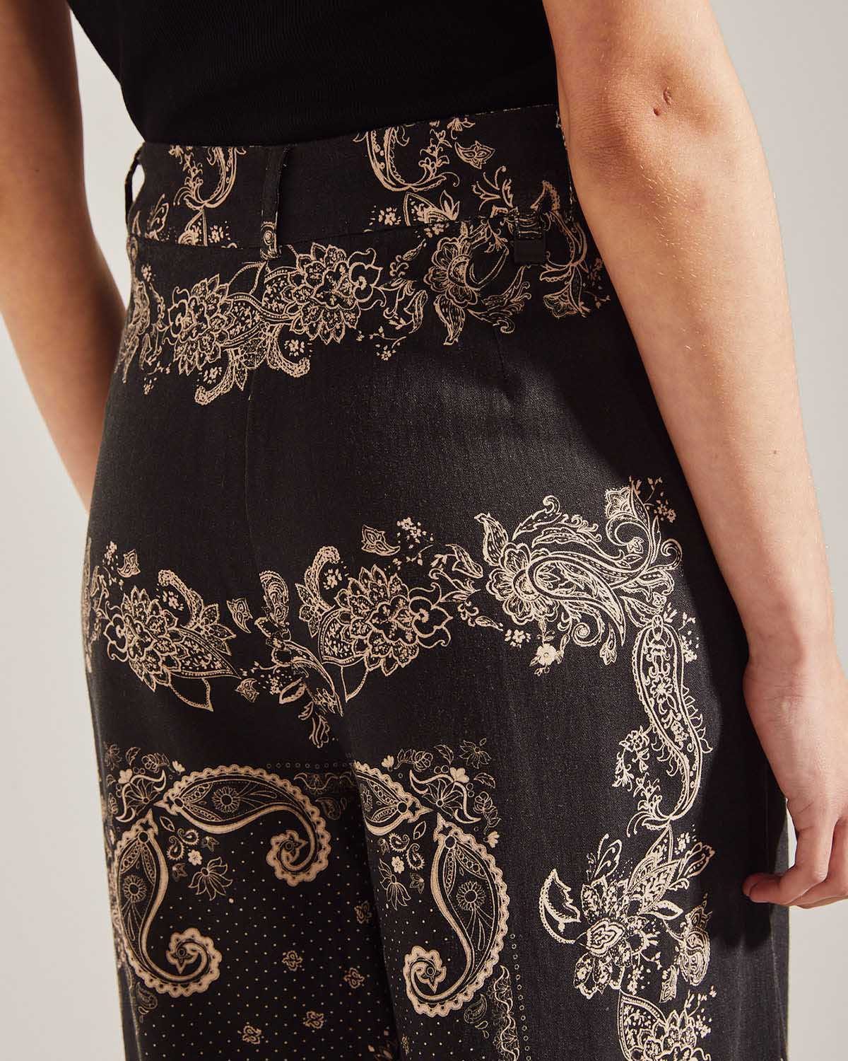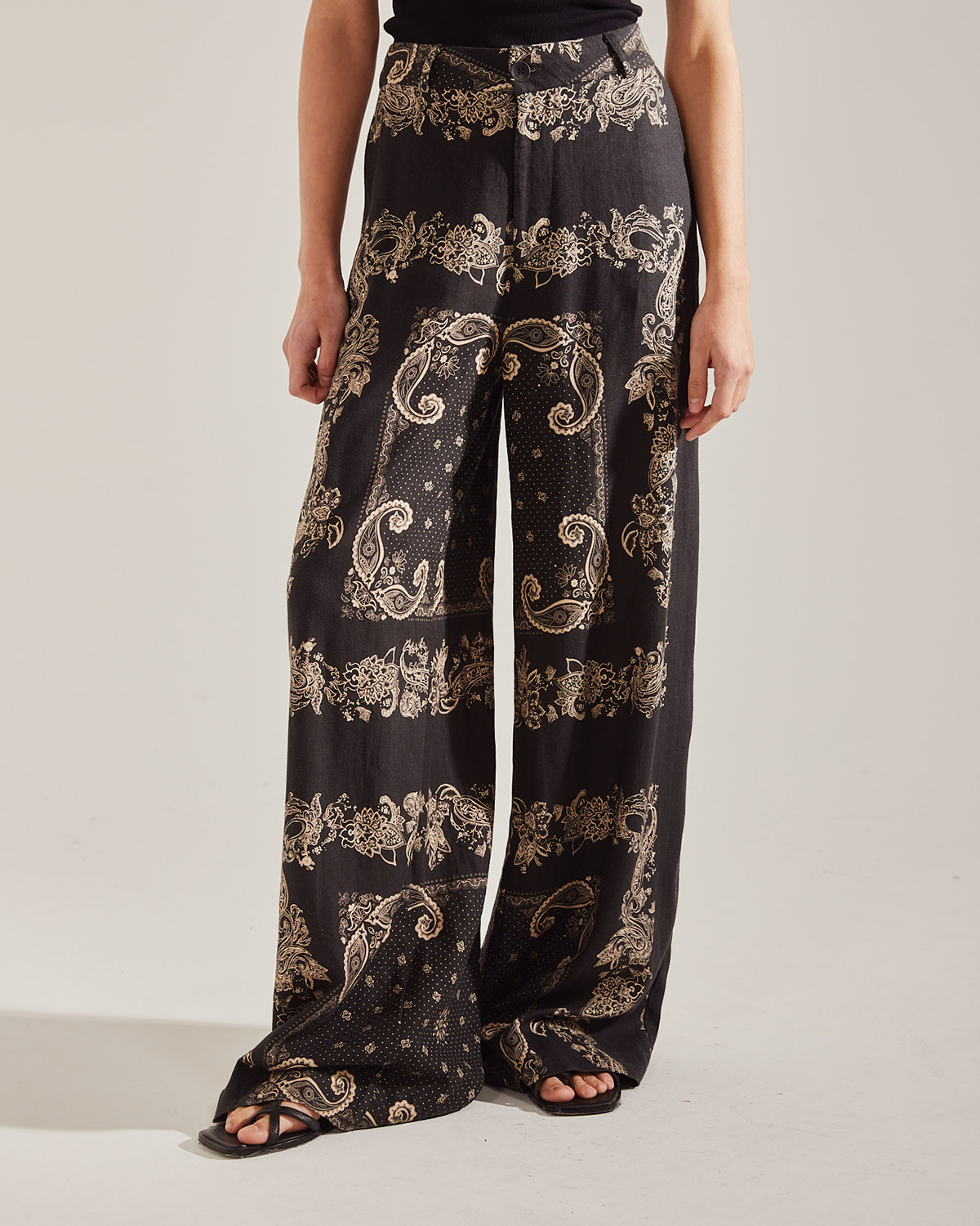 PANTALON CONFECCIONADO EN LINO ESTAMPADO. WIDE LEG. TIRO ALTO.