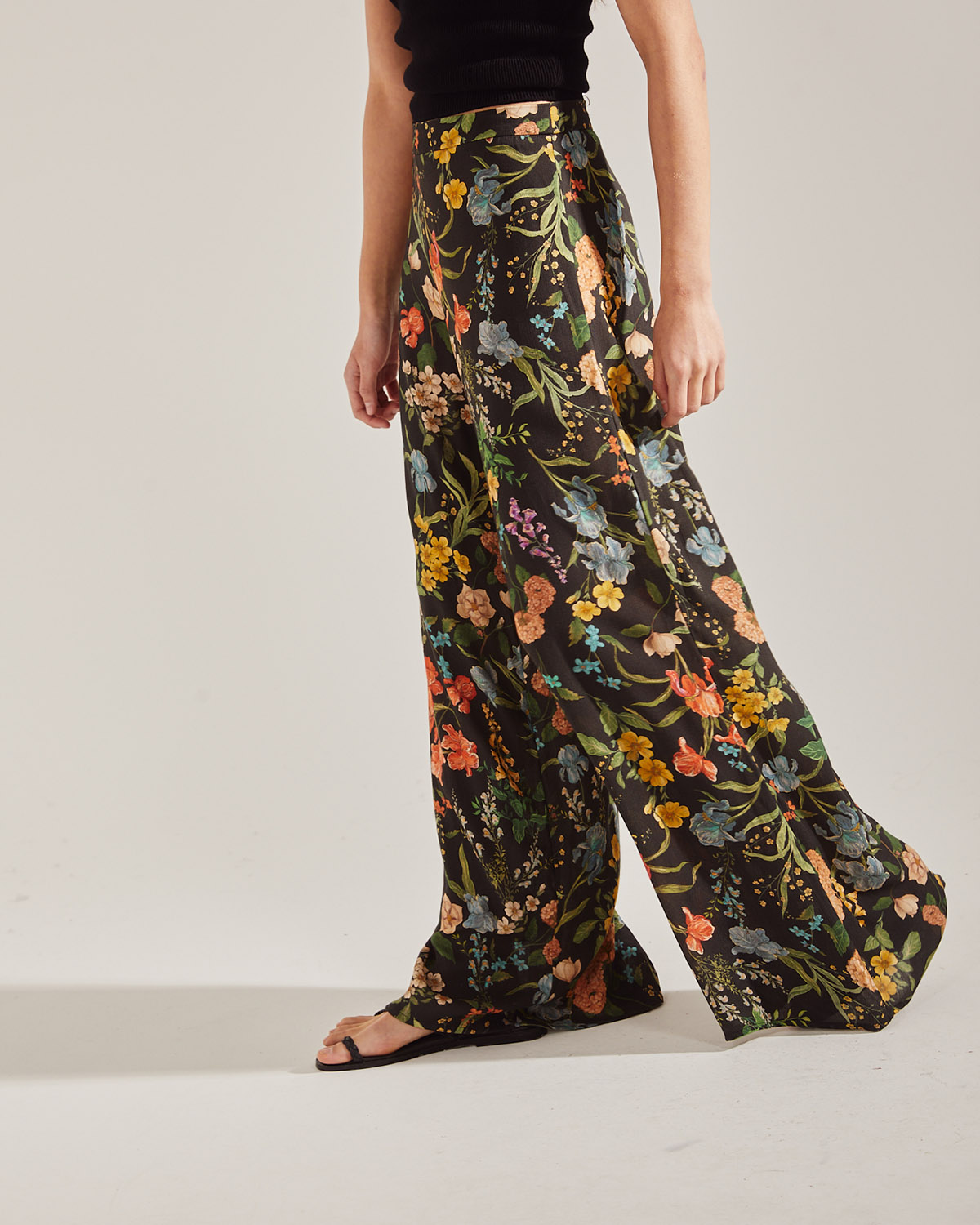 PANTALON WIDE LEG CONFECCIONADO EN VISCOSA ESTAMPADA. CON DETALLE DE ELASTICO A LA VISTA EN LA ESPALDA Y CIERRE DIENTES DE PERRO.