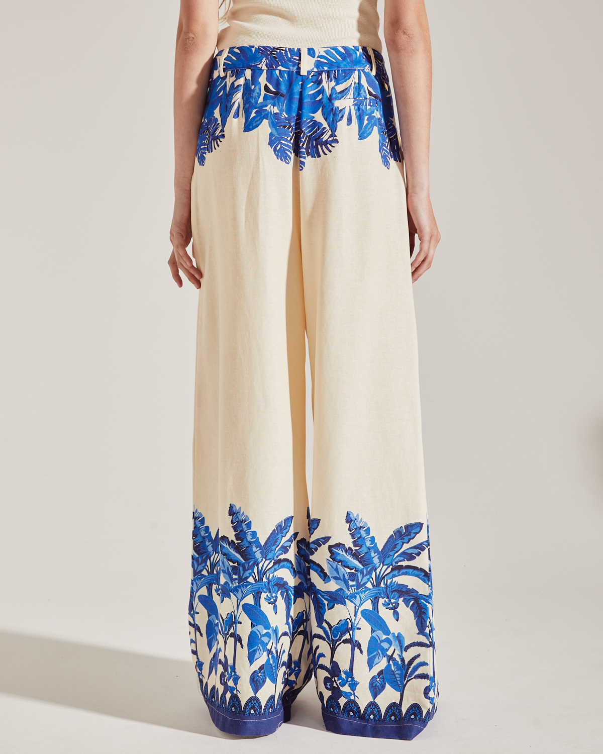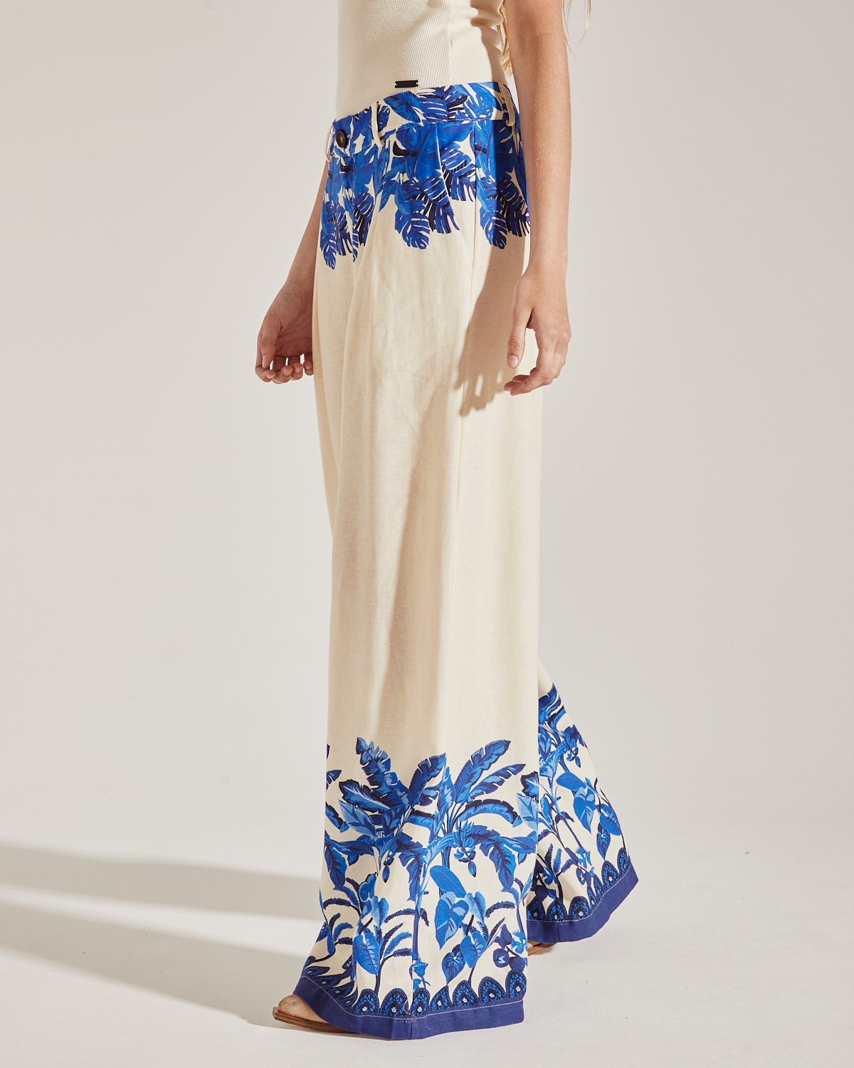 PANTALÓN TIPO SASTRERO CONFECCIONADO EN TEXTIL SIMIL LINO ESTAMPADO. TIRO ALTO CON PINZAS EN EL DELANTERO Y BOLSILLO OJAL EN ESPALDA.