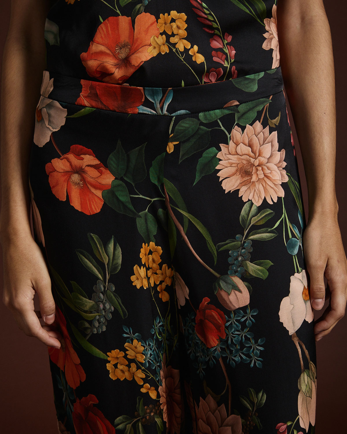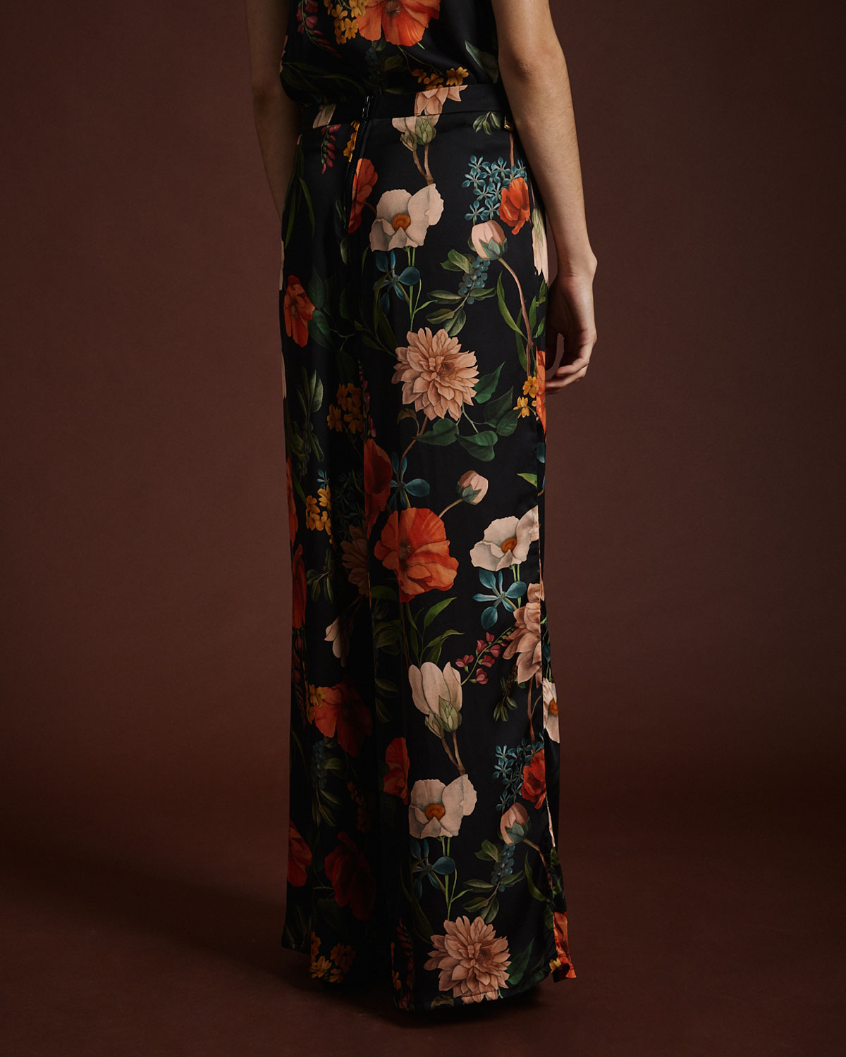 PANTALÓN CONFECCIONADO EN VISCOSA ESTAMPADA. CALCE AMPLIO. POSEE ELÁSTICO Y CIERRE EN CENTRO ESPALDA.
