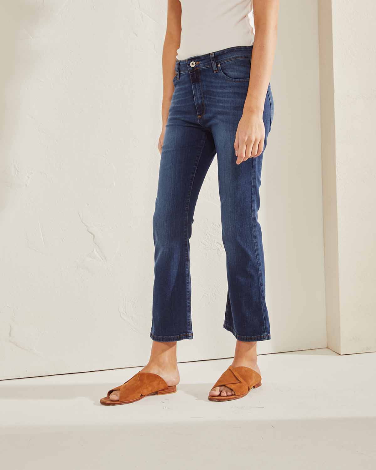 ROSE ES NUESTRO CALCE BOOT CUT DE TIRO ALTO, AJUSTADO HASTA LA RODILLA.