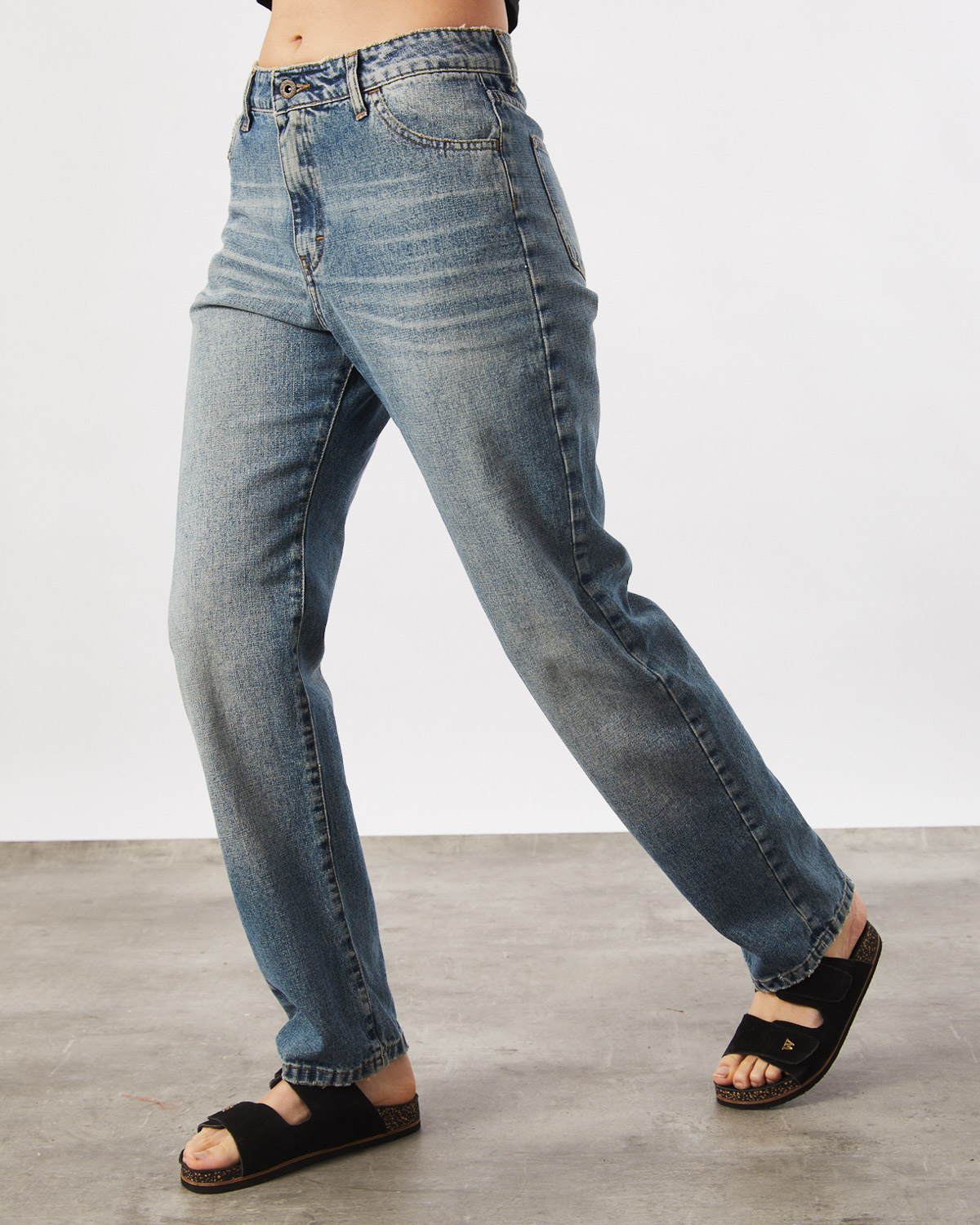 JEAN CONFECCIONADO EN ALGODÓN. CALCE HOLGADO, LARGO HASTA LOS TOBILLOS CON RUEDO ROLL UP ALTO EN BOTAMANGA.