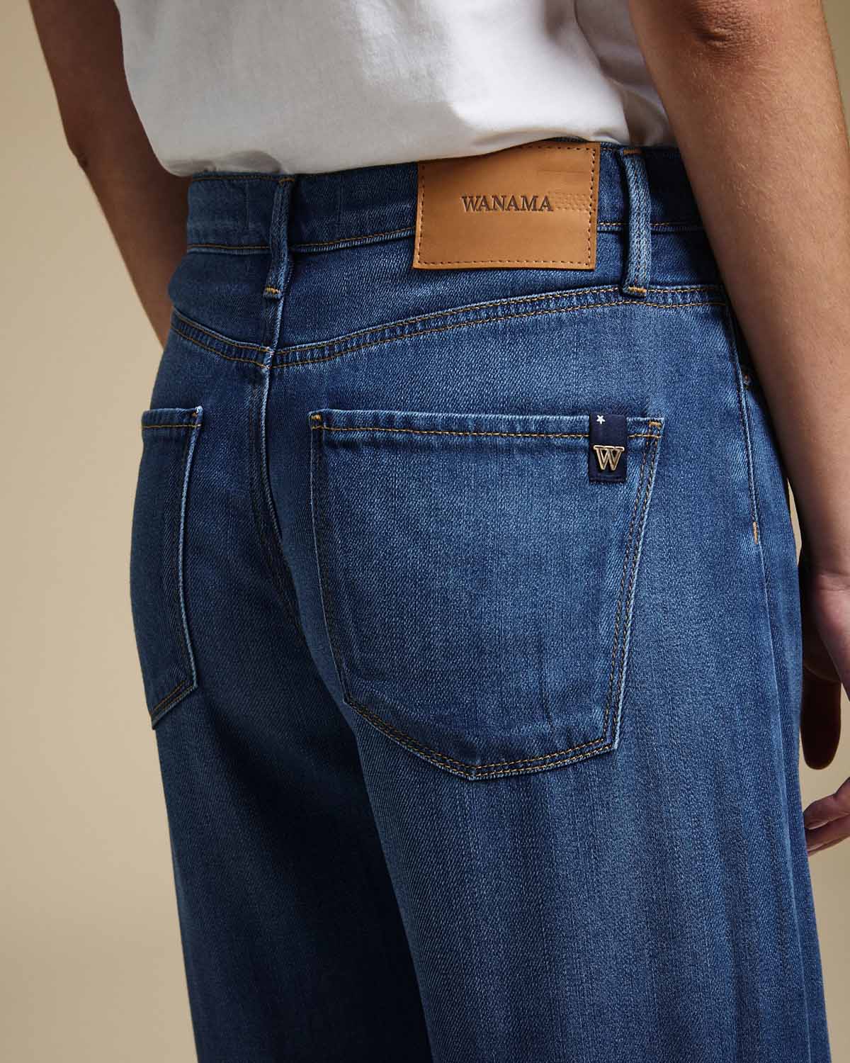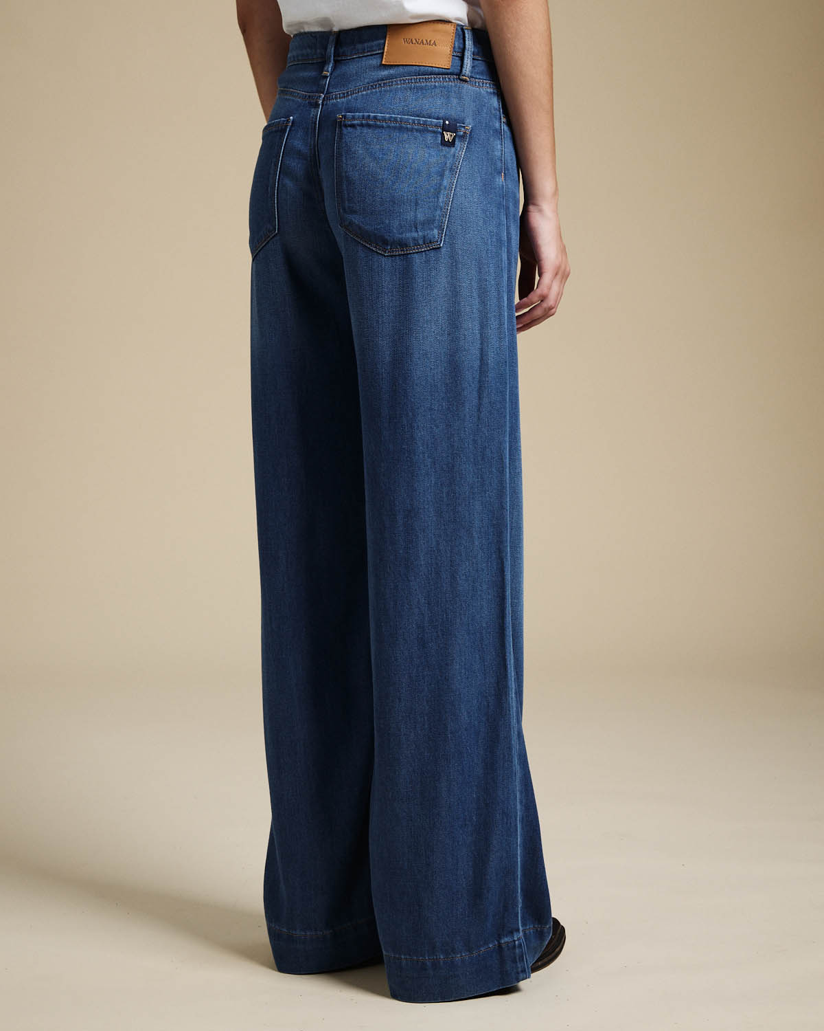 JEAN CONFECCIONADO EN TENCEL CON CALCE AL CUERPO Y BOTA ANCHA.