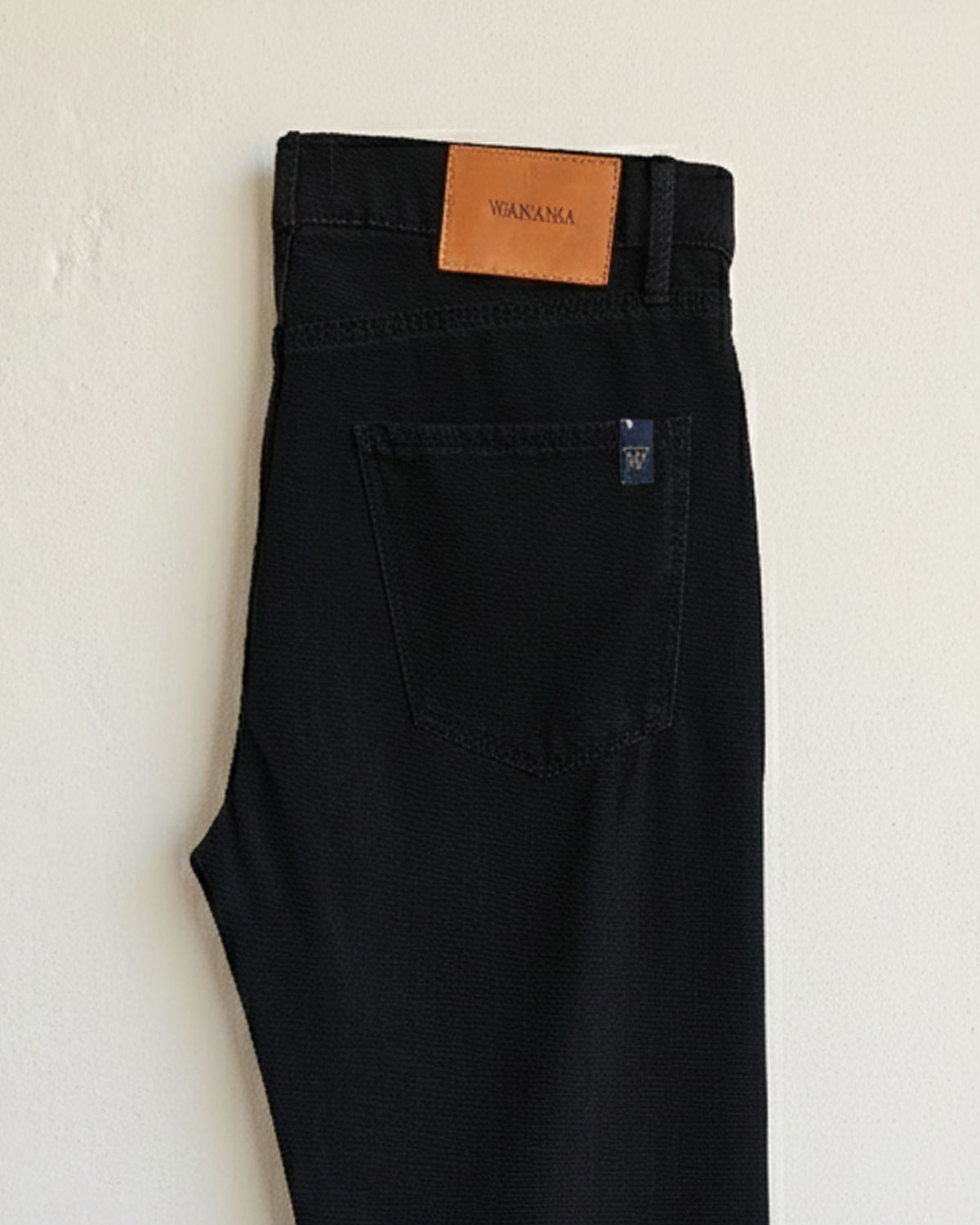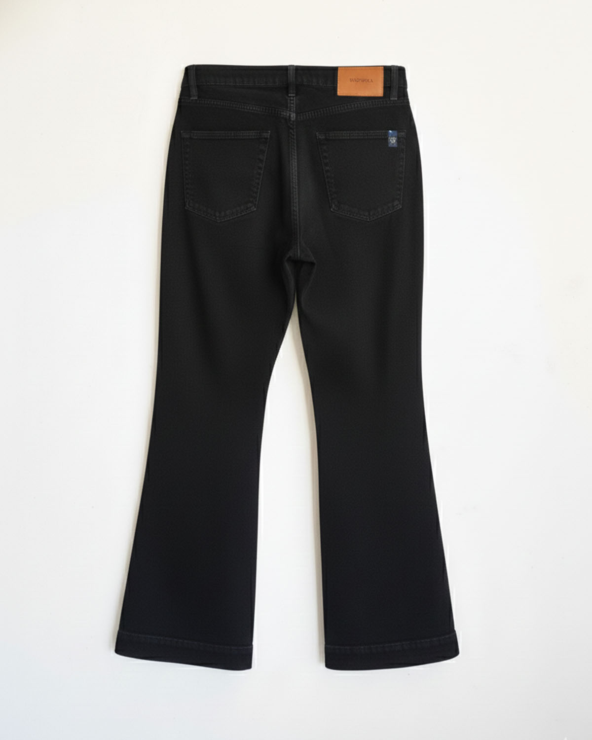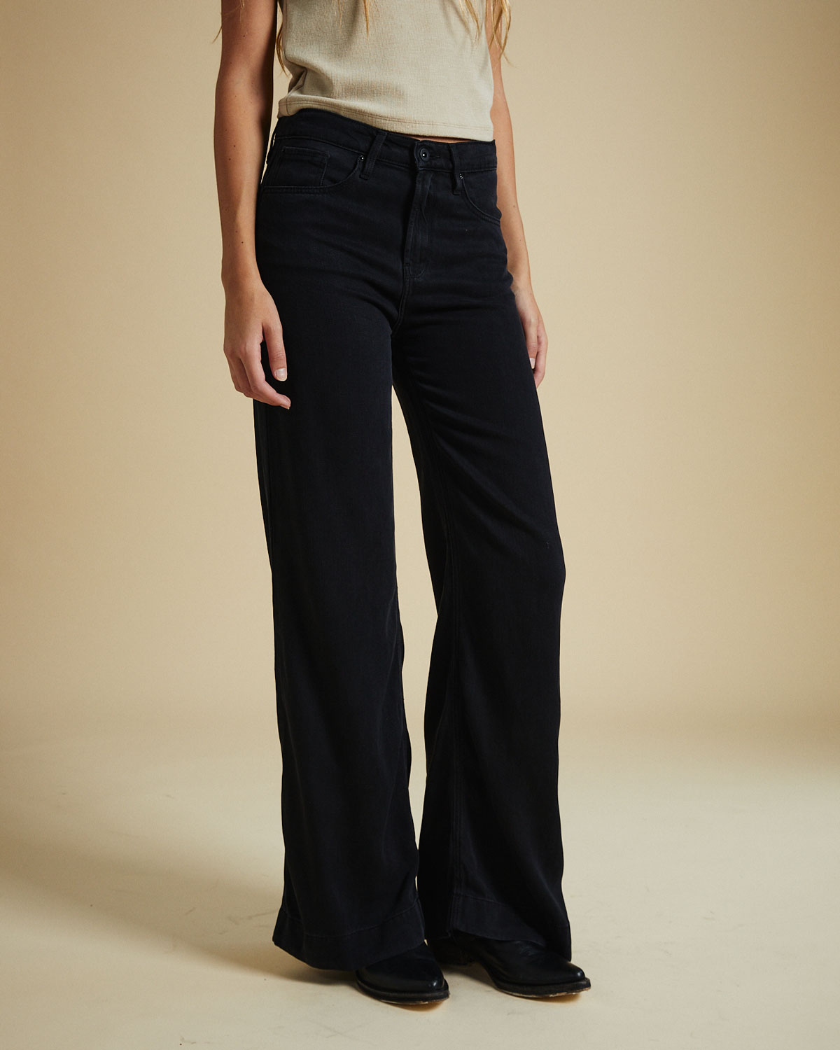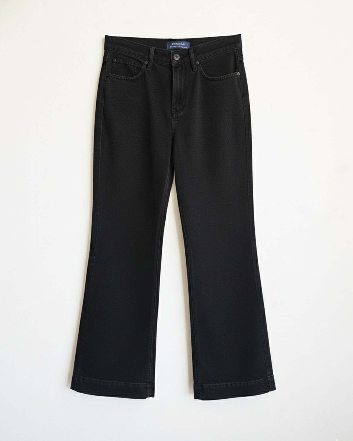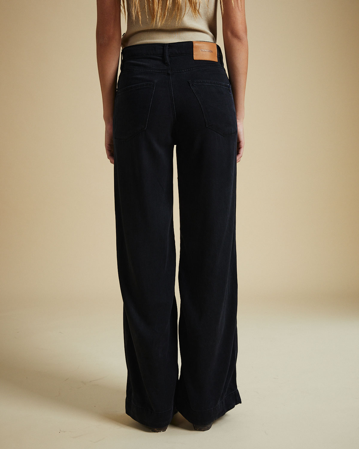 JEAN CONFECCIONADO EN TENCEL CON CALCE AL CUERPO Y BOTA ANCHA.