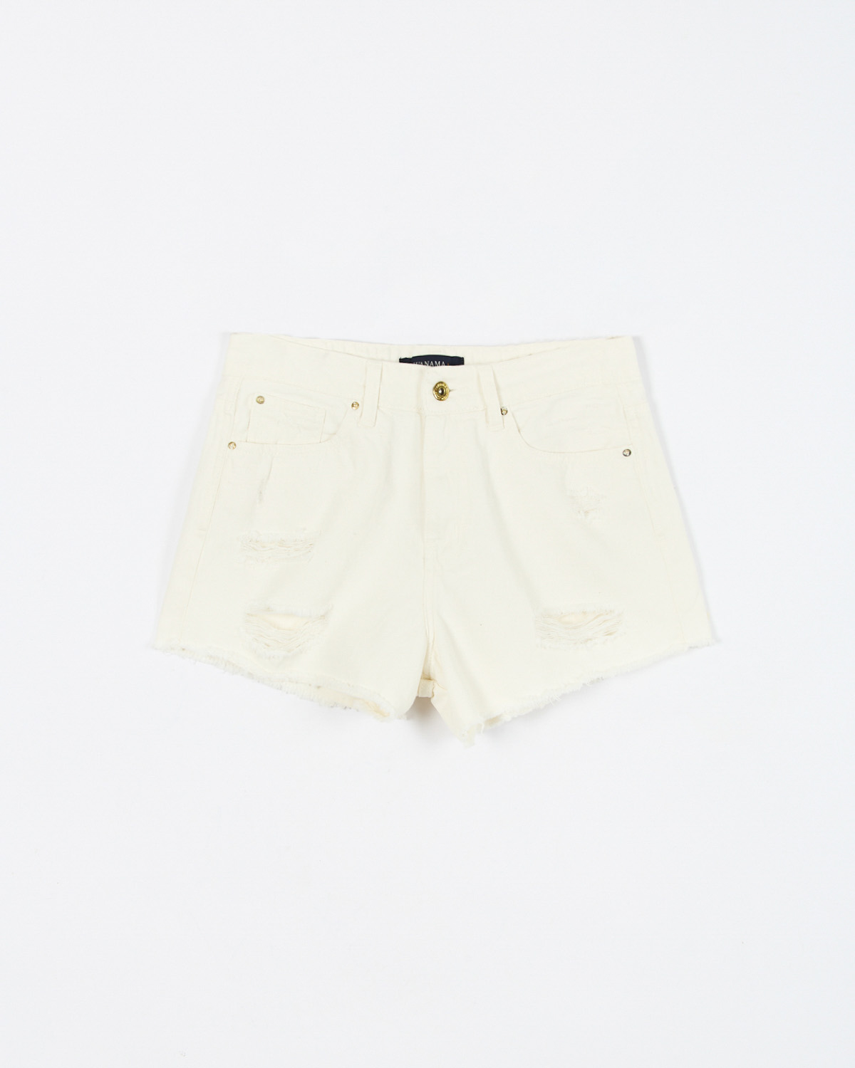 EL SHORT GELLY TIENE UN LOOK USED WHITE Y BORDADO DE MARCA EN BOLSILLOS TRASEROS. ACCESO POR DELANTERO MEDIANTE CIERRE Y BOTÓN.