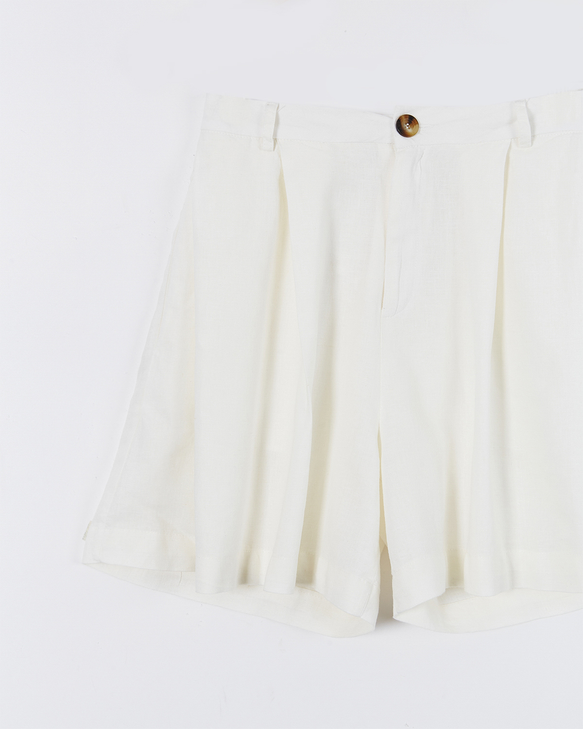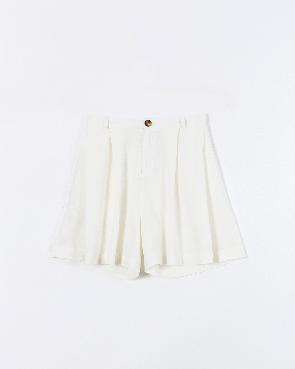 SHORT TIPO SASTRERO, CONFECCIONADO EN RAYON LINO CON PINZAS, BOLSILLOS EN DELANTEROS Y FALSOS BOLSILLOS EN ESPALDA. ACCESO CON CIERRE Y GANCHO INTERNOS.