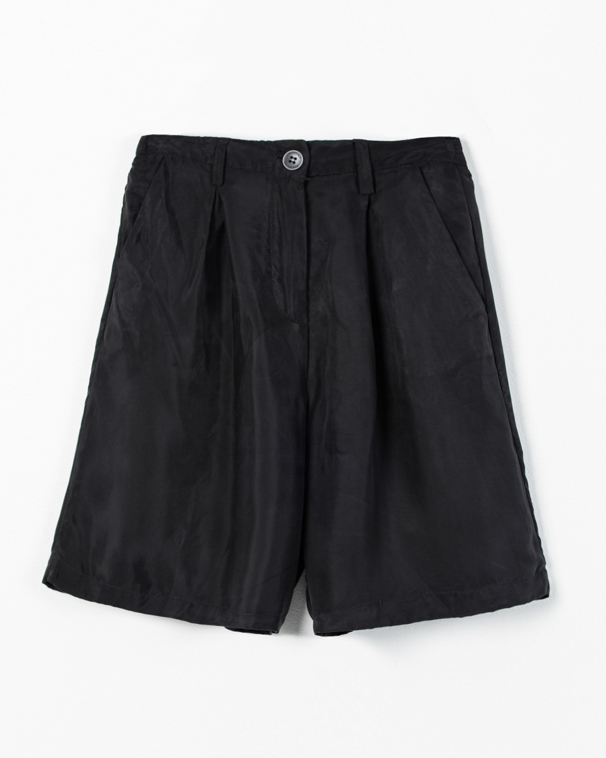 BERMUDA PIERNA ANCHA, CON BOLSILLOS LATERALES Y TRASEROS. ACCESO CON CIERRE Y BOTON CENTRO DELANTERO.