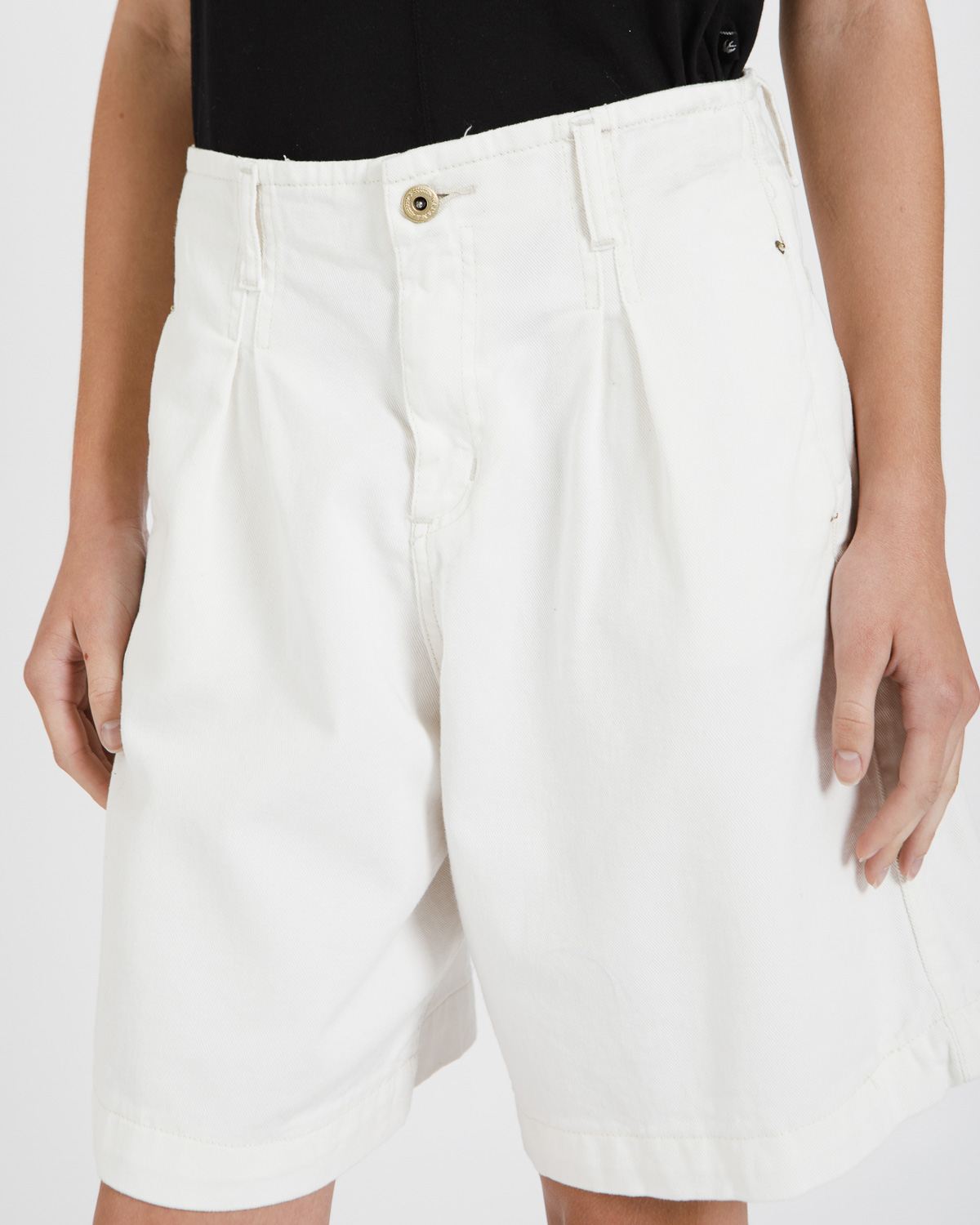 BERMUDA DE TIRO ALTO CON PINZAS EN DELANTERO Y BOLSILLOS PLAQUE ATRAS.
