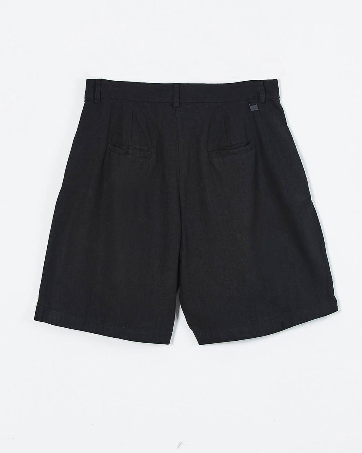 Bermuda pinzada confeccionada en lino. Con dos bolsillos delanteros y pasacintos en cintura.