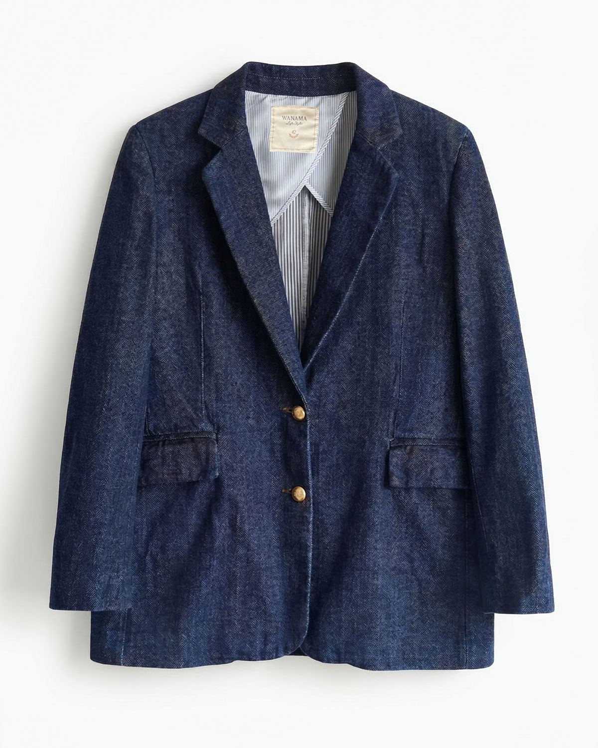 SACO SASTRERO DE TEJIDO DENIM CON LAVADO PREWASH. HACE CONJUNTO CON EL PANTALÓN APPAREL.