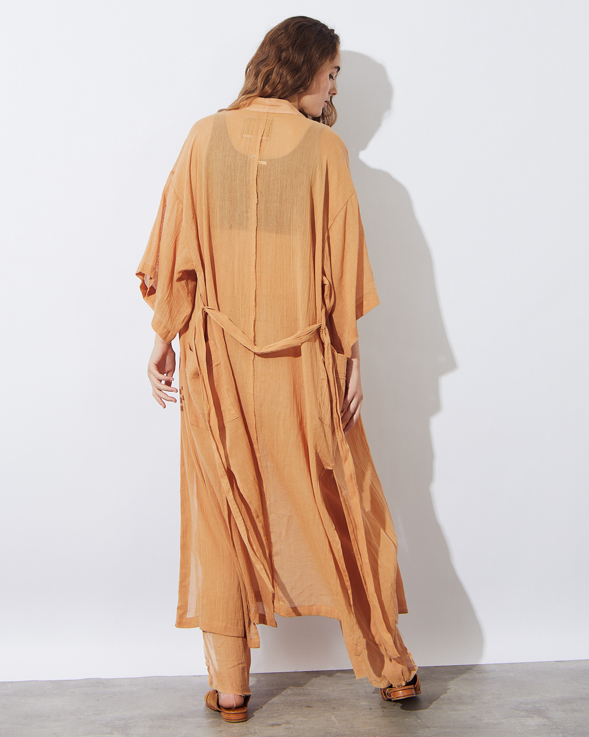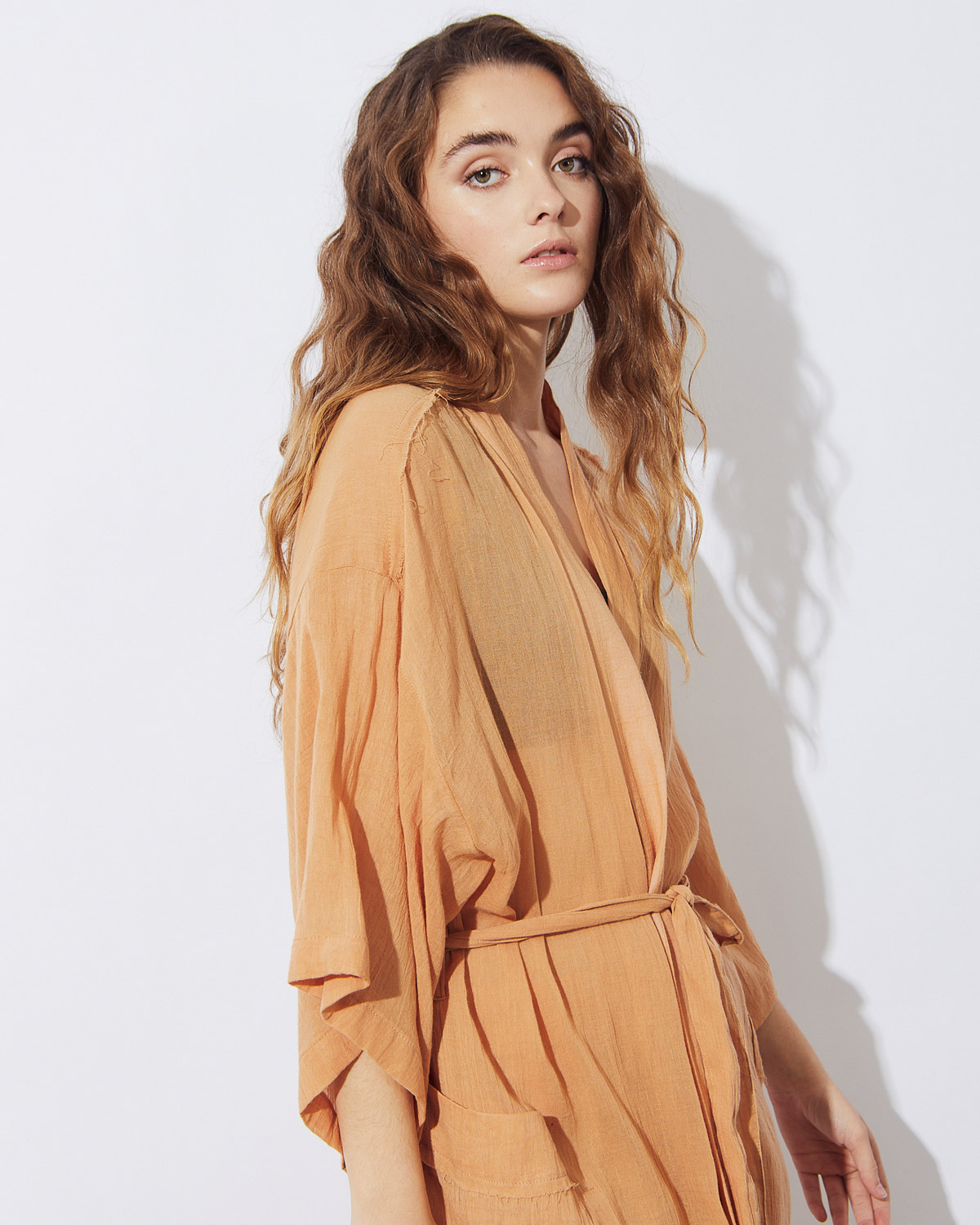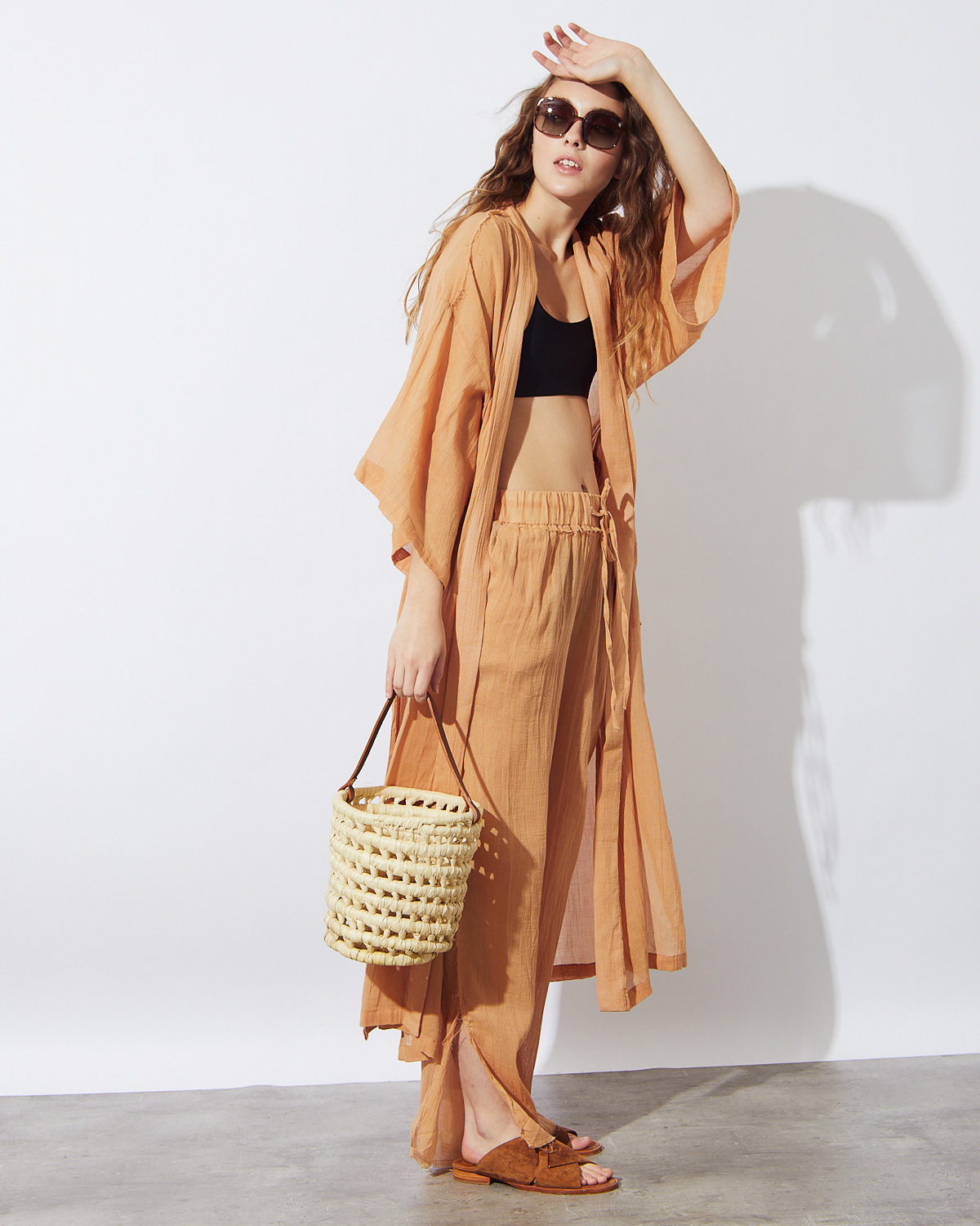 LAYER CONFECCIONADA EN GASA DE ALGODÓN. CALCE SUELTO Y RELAJADO, ACCESO DELANTERO REGULABLE CON LAZO EN CINTURA. BOLSILLOS PLAQUES LATERALES.