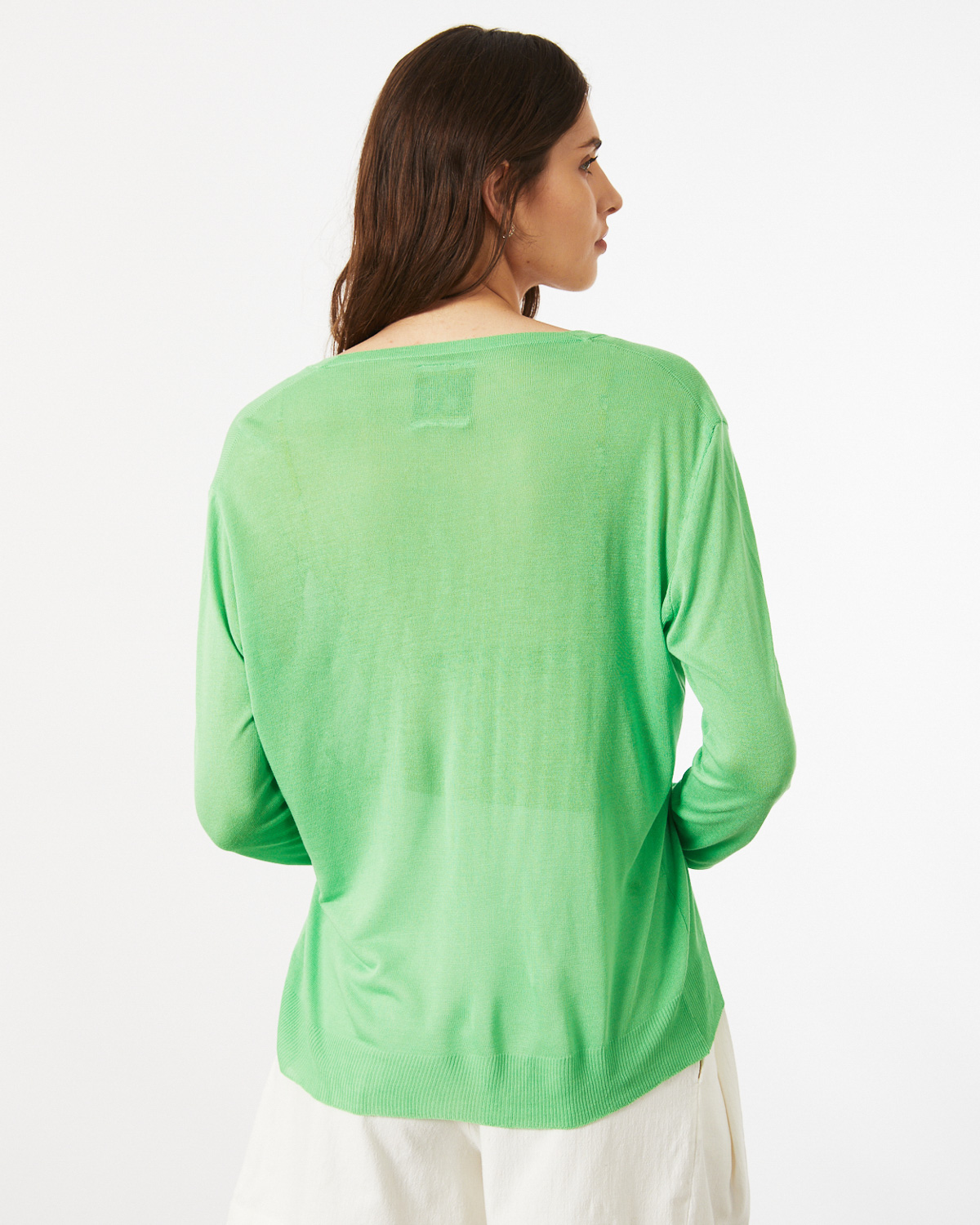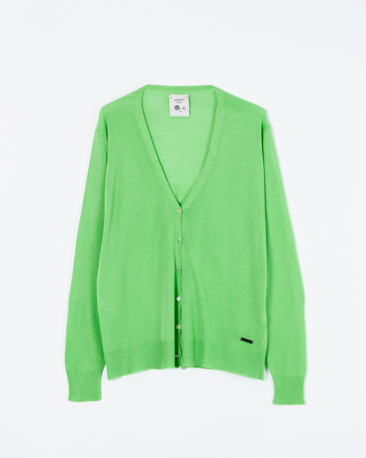 CARDIGAN CONFECCIONADO EN SUAVE HILADO DE VISCOSA. CON ESCOTE EN V Y BOTONES NACARADOS EN EL FRENTE.