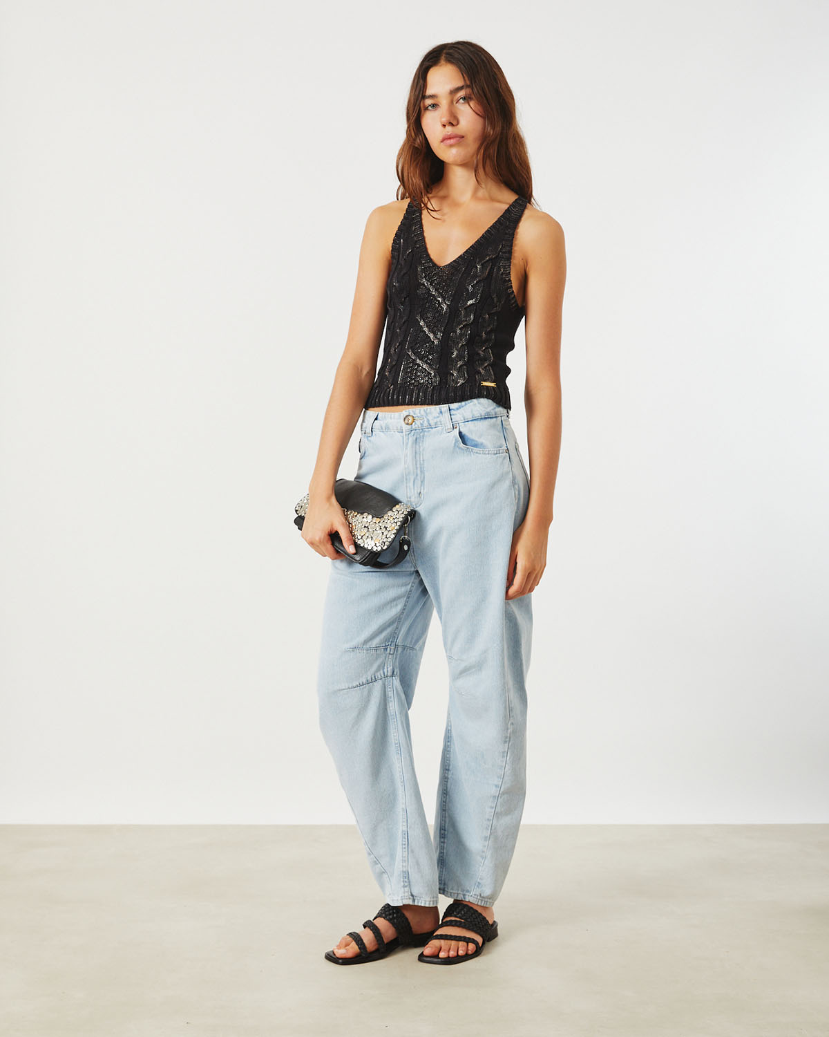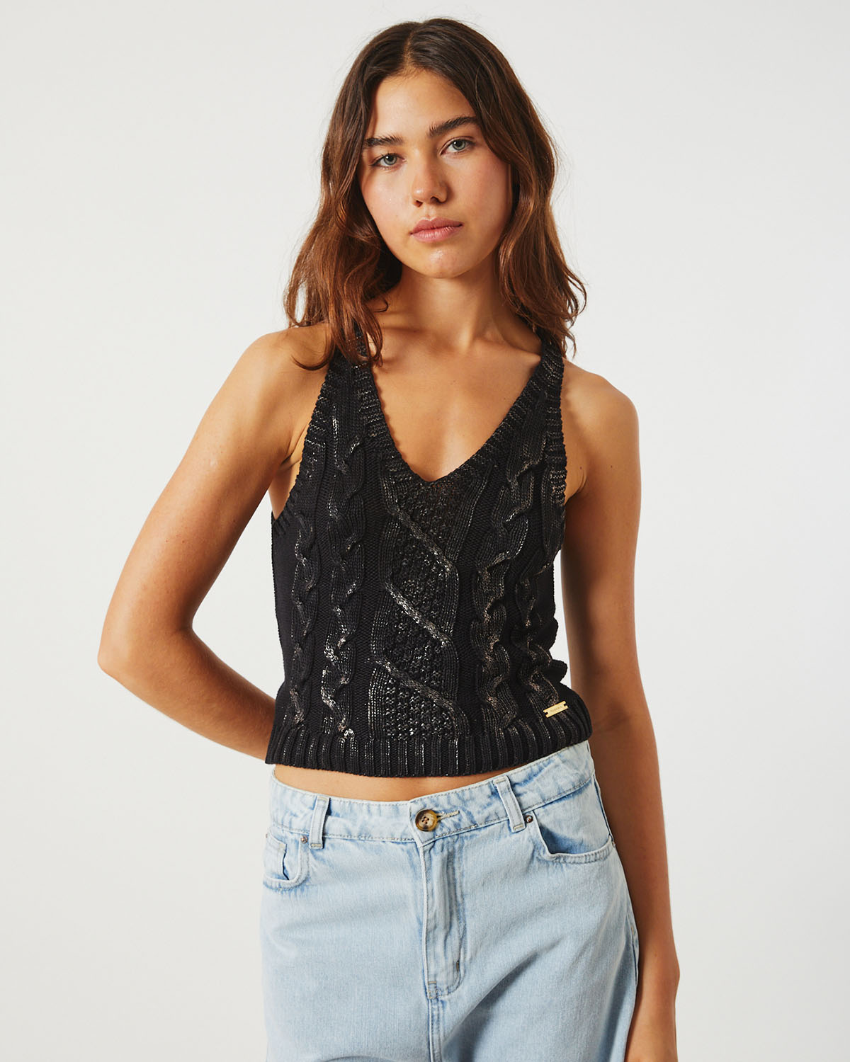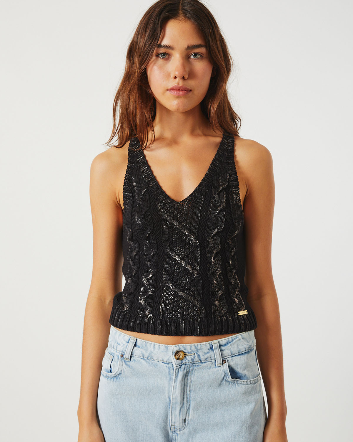 MUSCULOSA EN ALGODON, CON DISEÑO DE TRENZAS , Y FOIL.