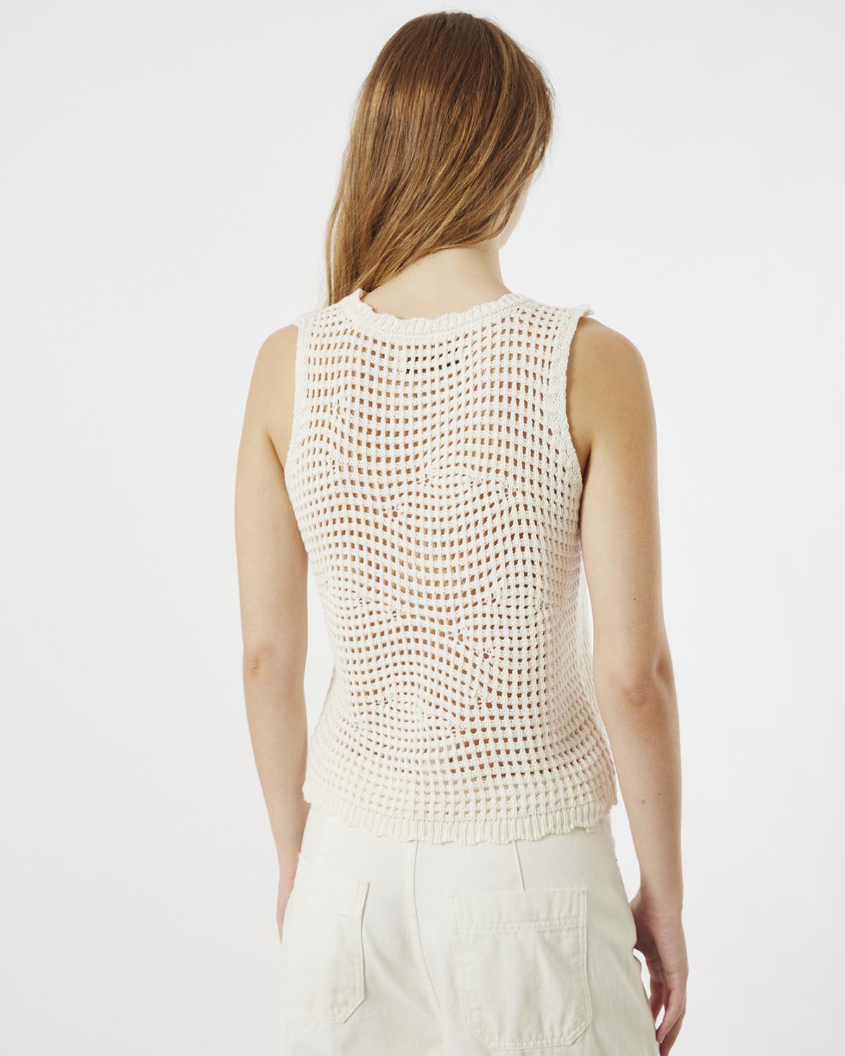 MUSCULOSA TEJIDA, SIMULANDO TEJIDO A MANO. DE CALCE AJUSTADO, LARGA A LA PRIMERA CADERA.
