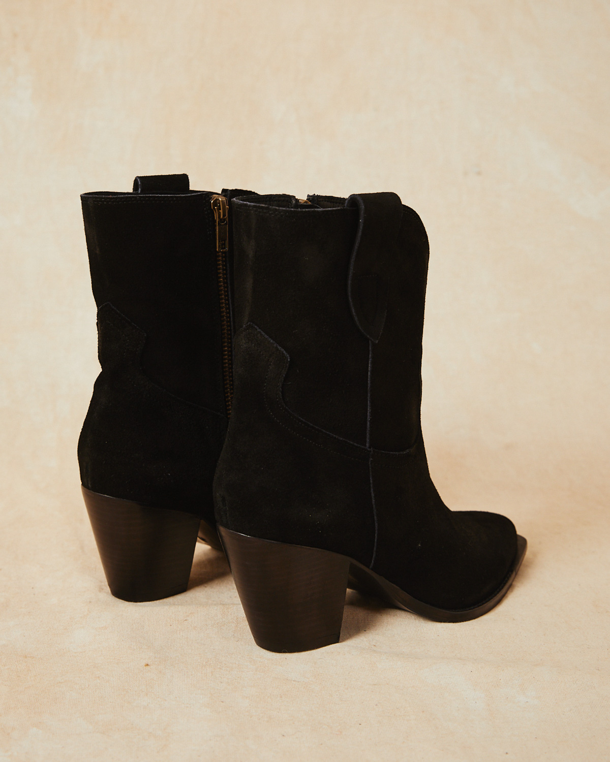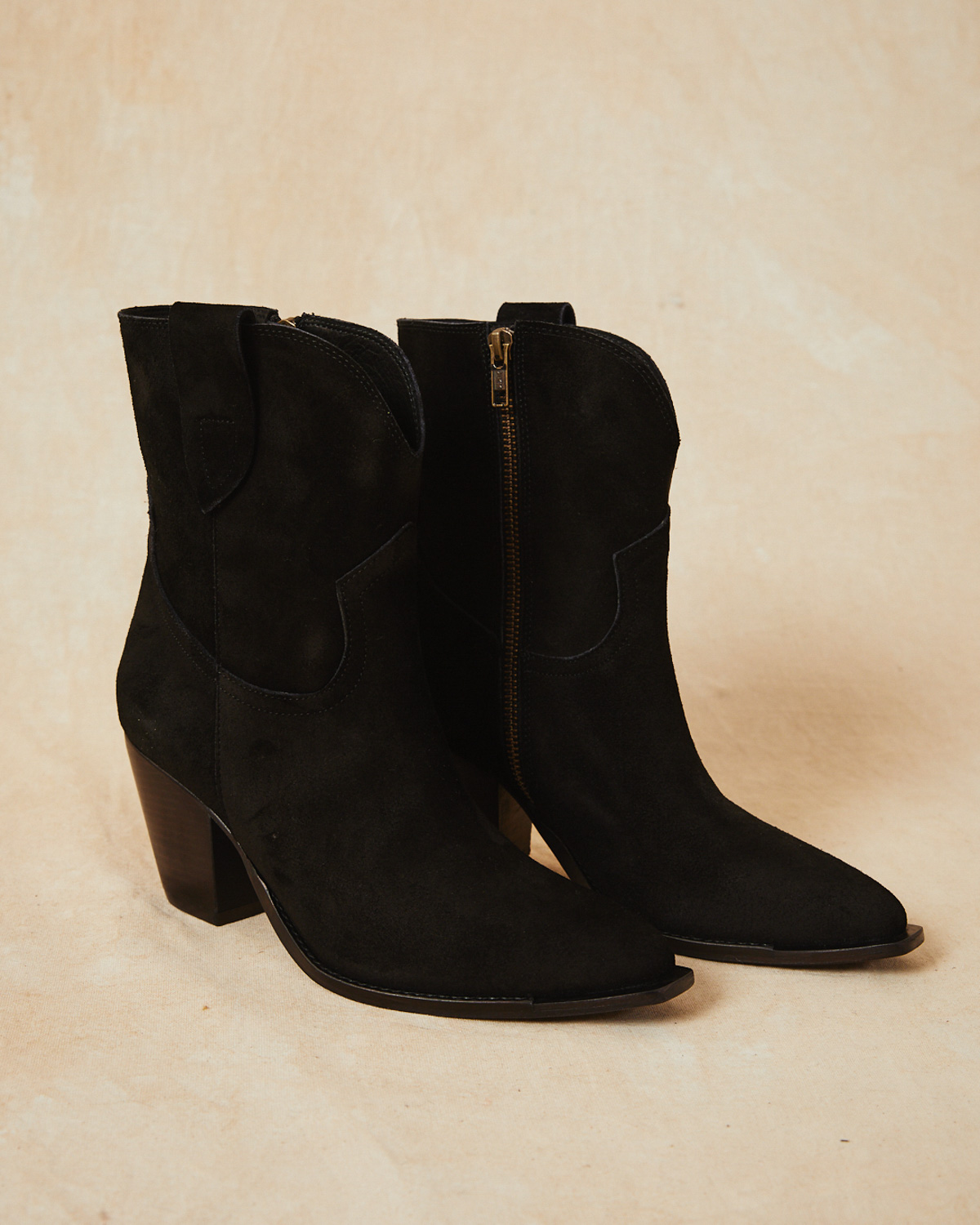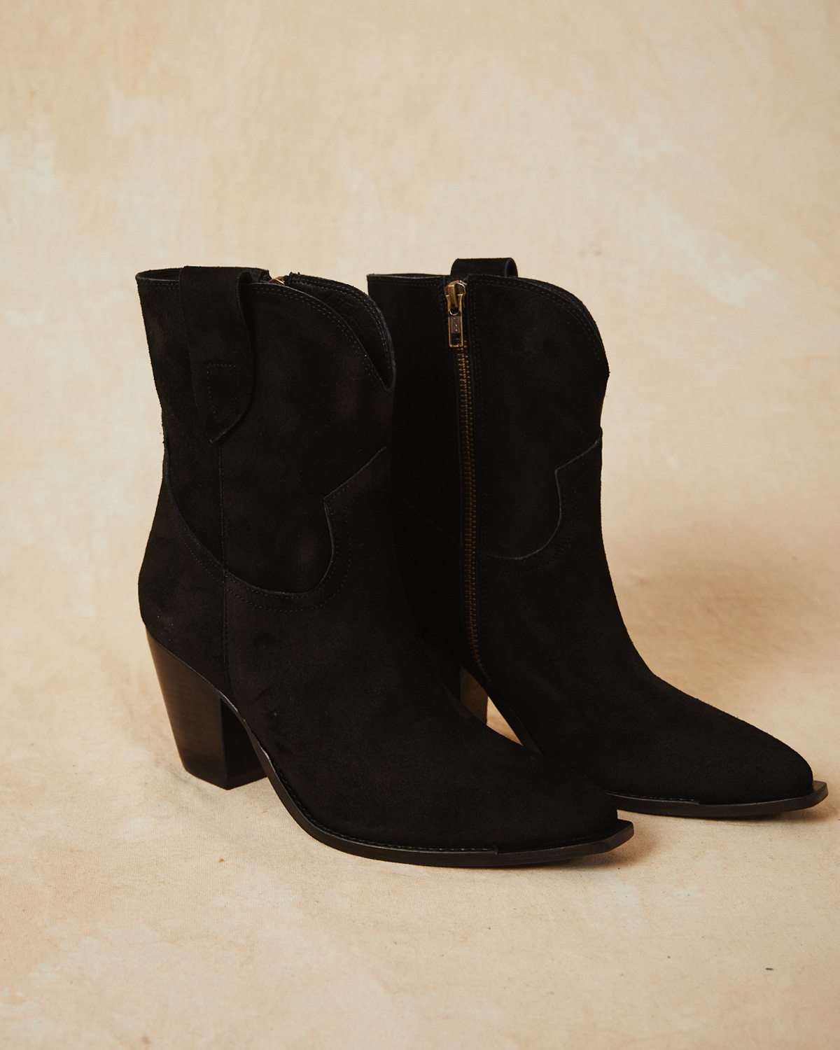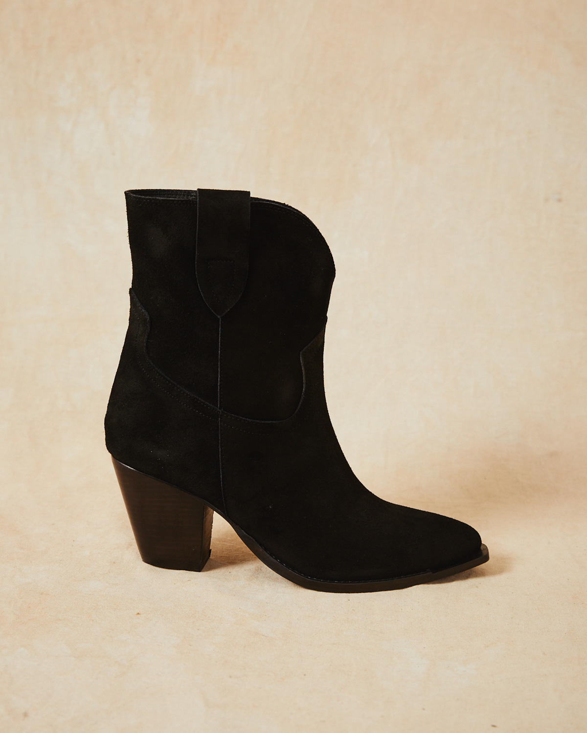 BOTA TEXANA DE CAÑA MEDIA, EN CUERO DE GAMUZA.