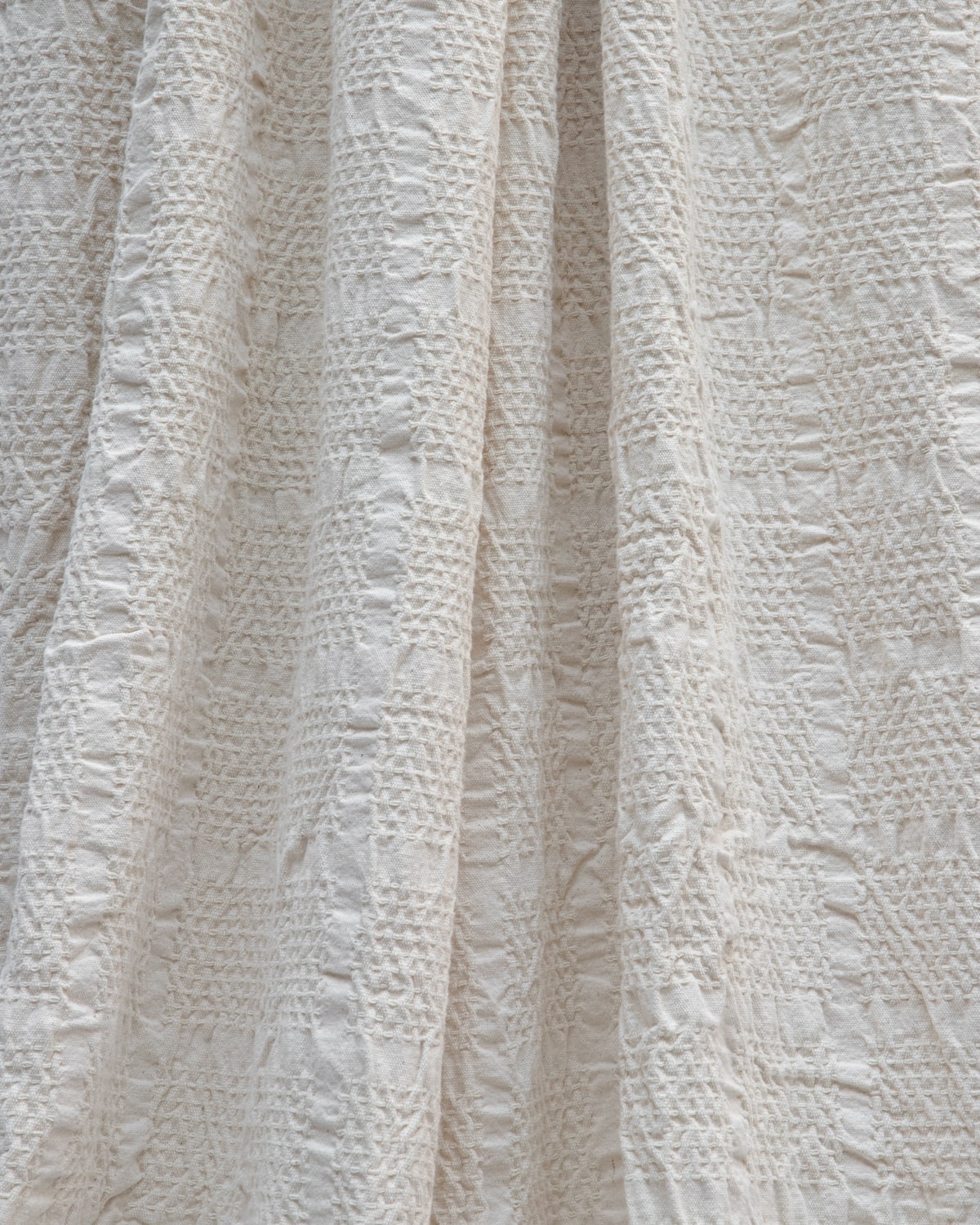 MANTA OCEAN 1,50 X 240 Creamos esta hermosa linea Ocean en hilo de algodón que produce una textura blanda y agradable al tacto. Manta en color natural con flecos en los bordes. Medida: 1,50 x 2,40 Origen: Argentina