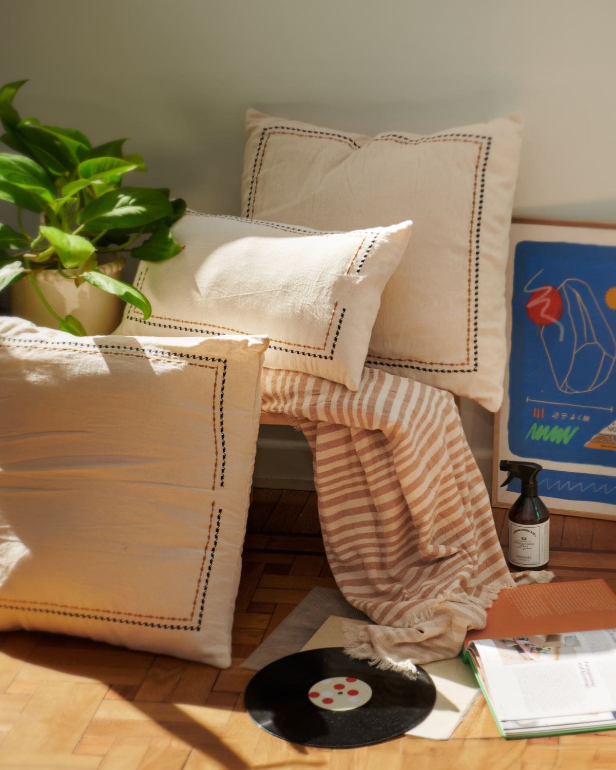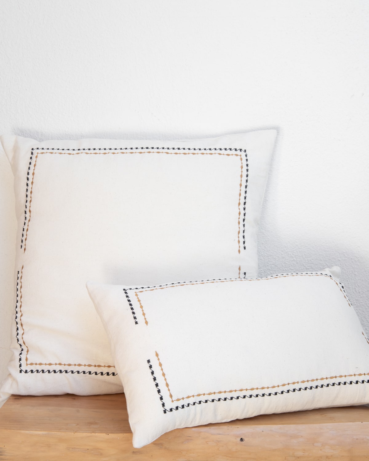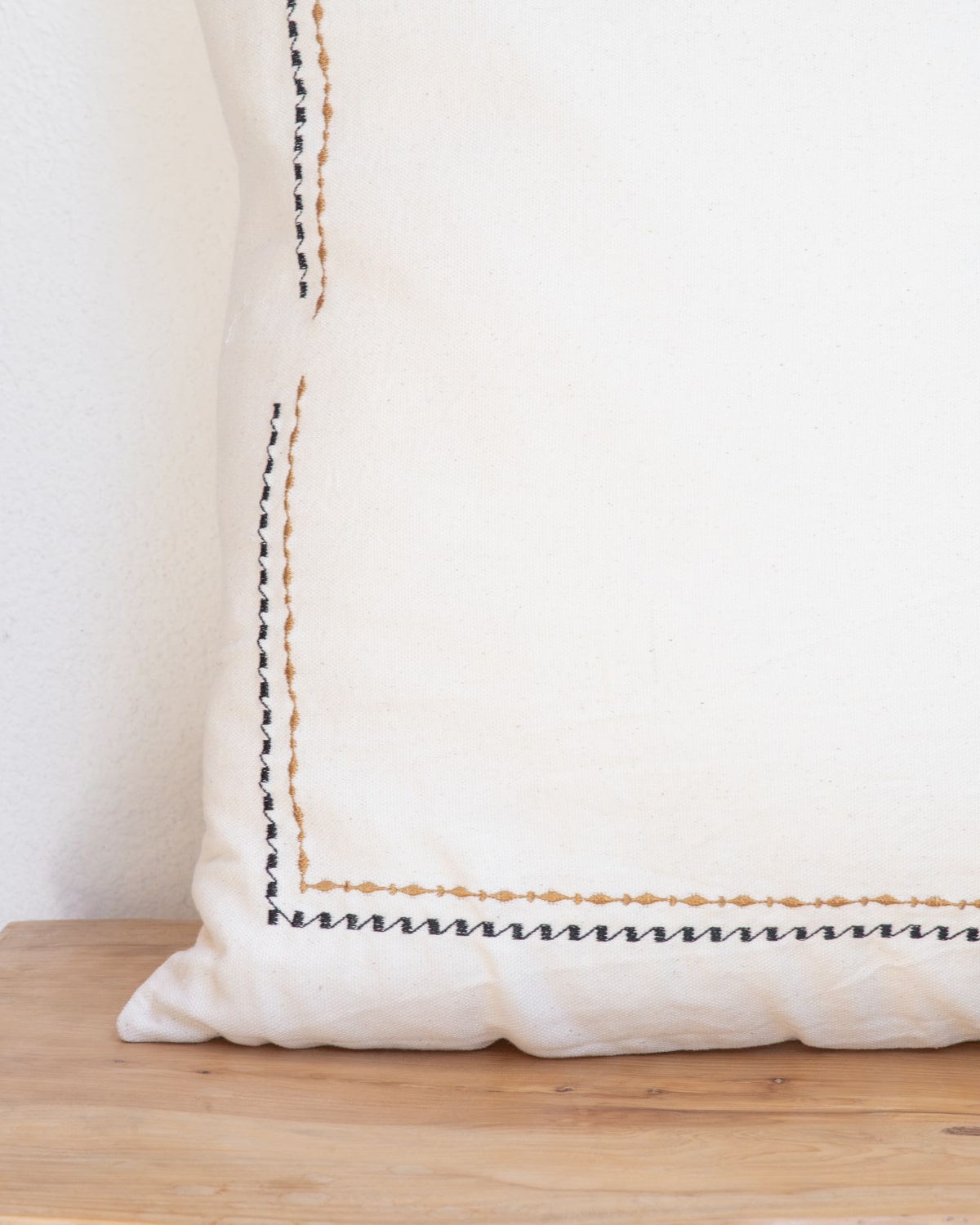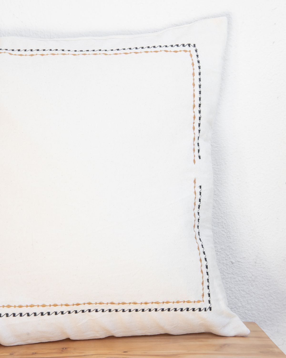 ALMOHADON BRANDO, Realza tu espacio favorito con este hermoso almohadon. Su contorno esta bordado con un delicado diseno en colores negro y ocre. Medida: 60 x 60 Origen: Argentina