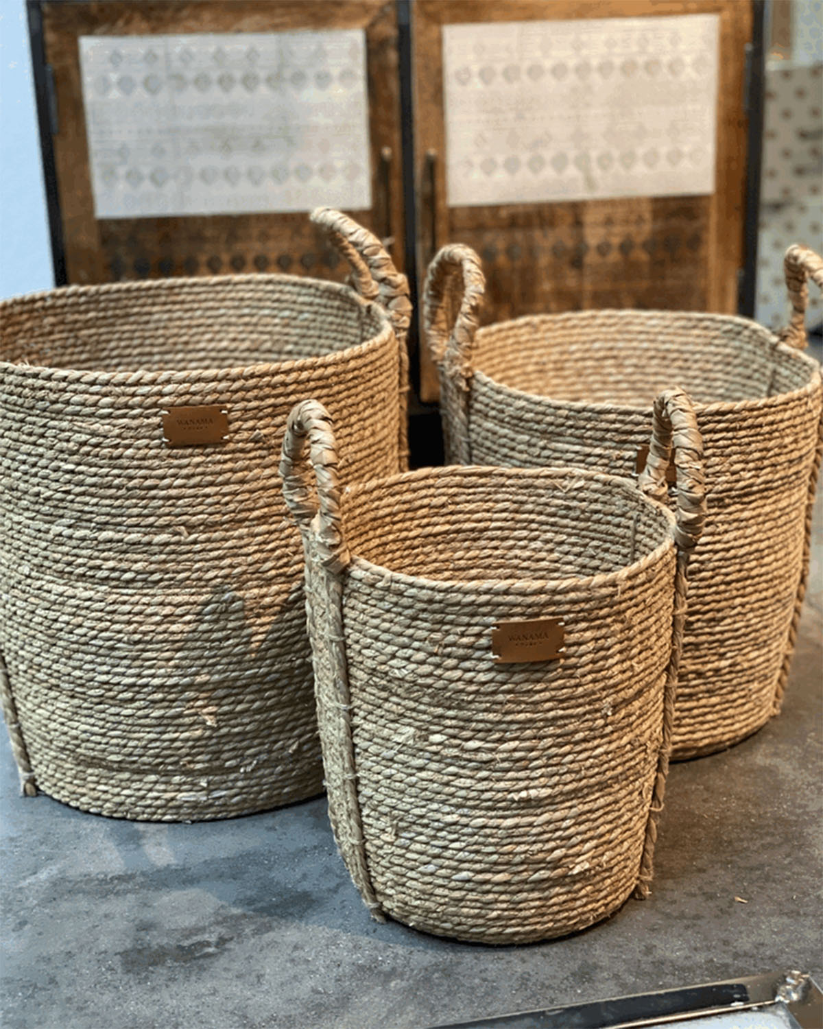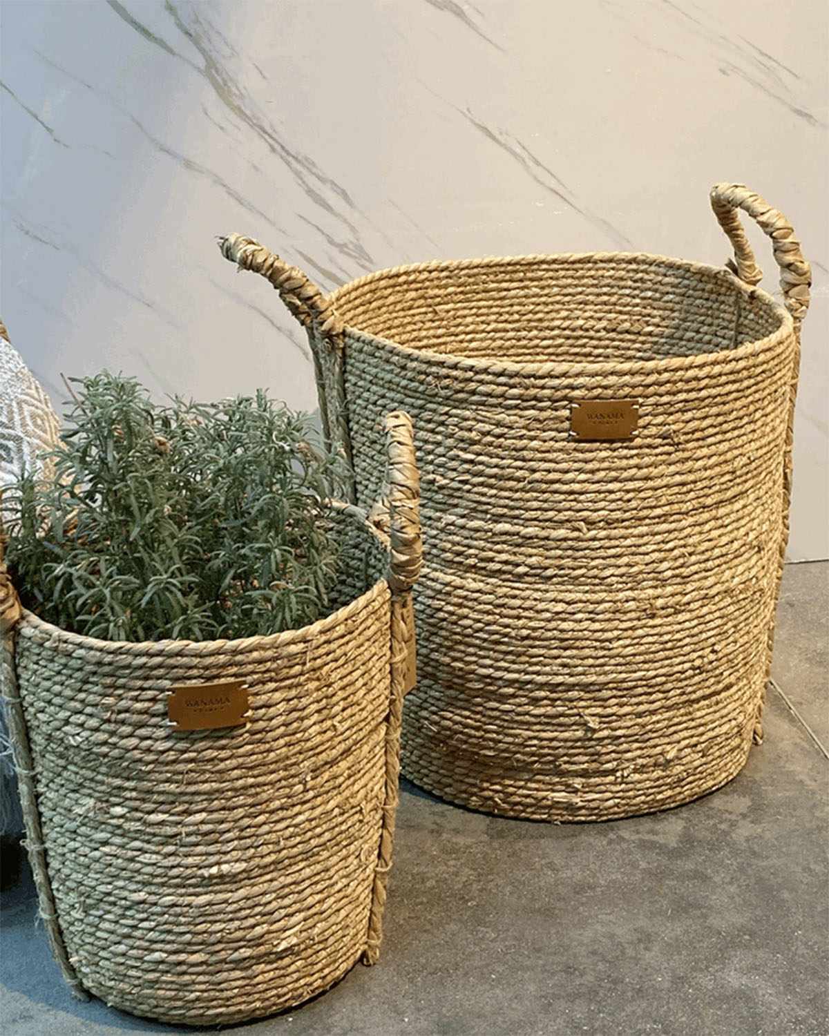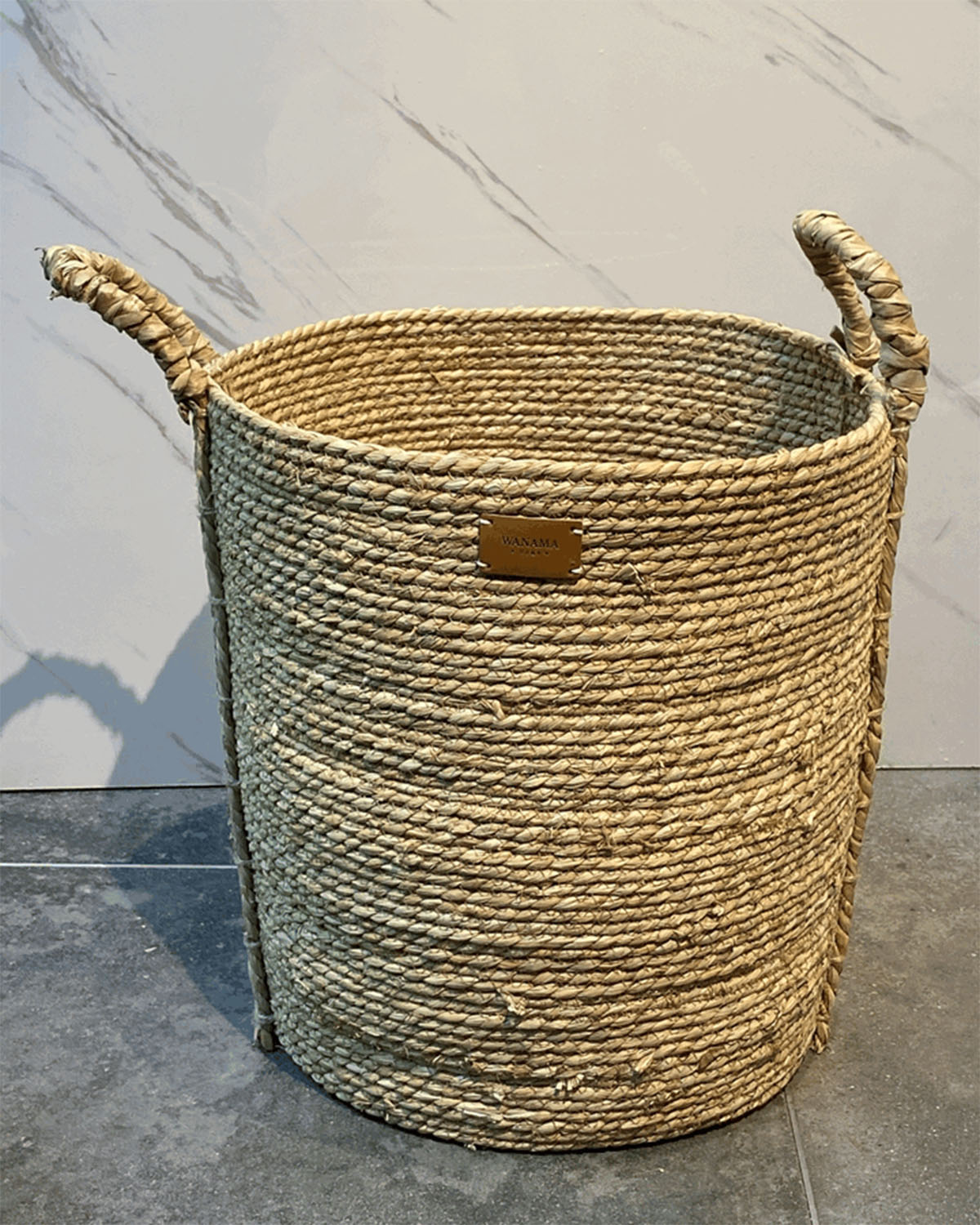 CANASTO DION GRANDE; Canasto de hilo de segrass; Composicion: seagrass Medida: 40cm de alto, 43 diam; Origen: Vietnam