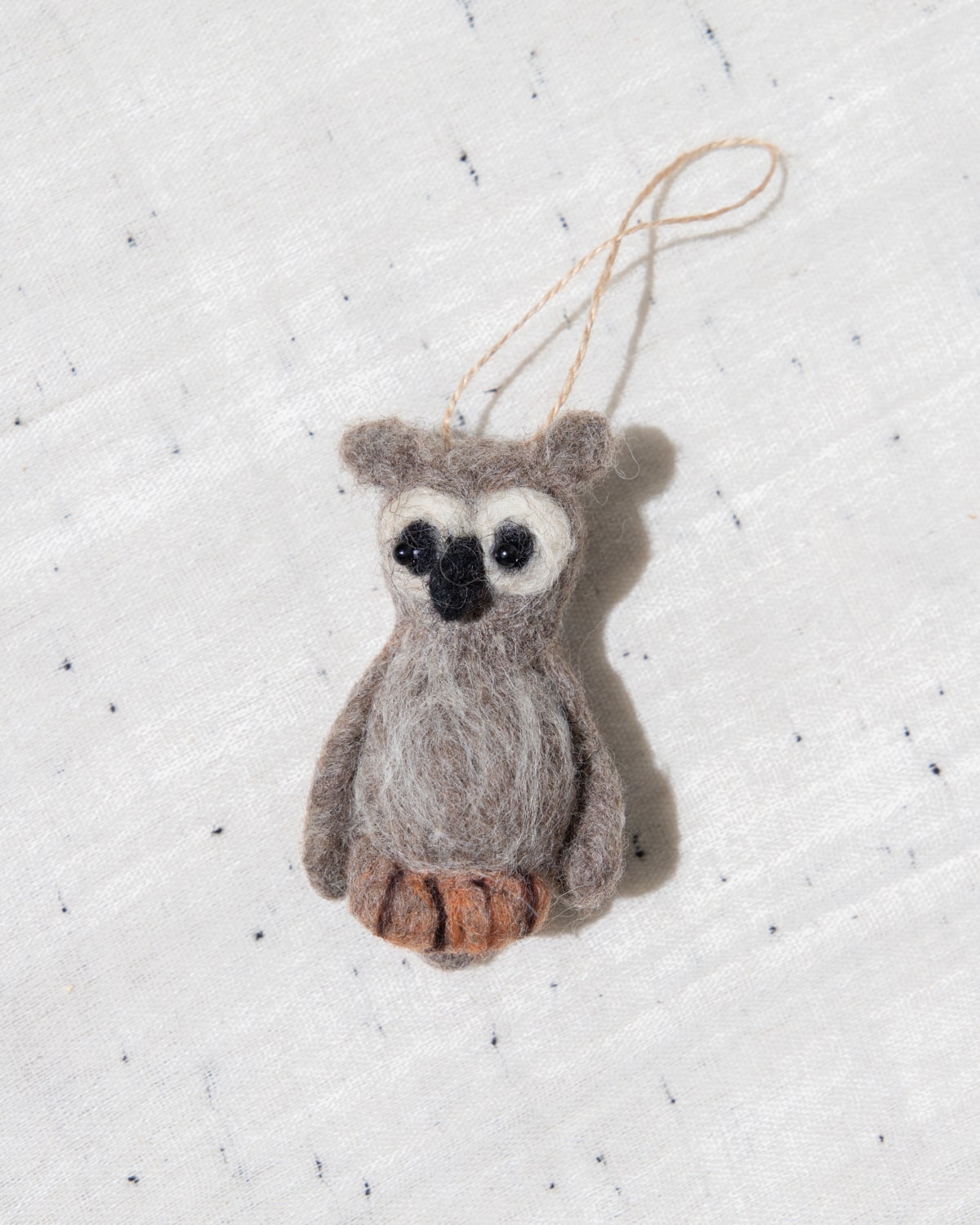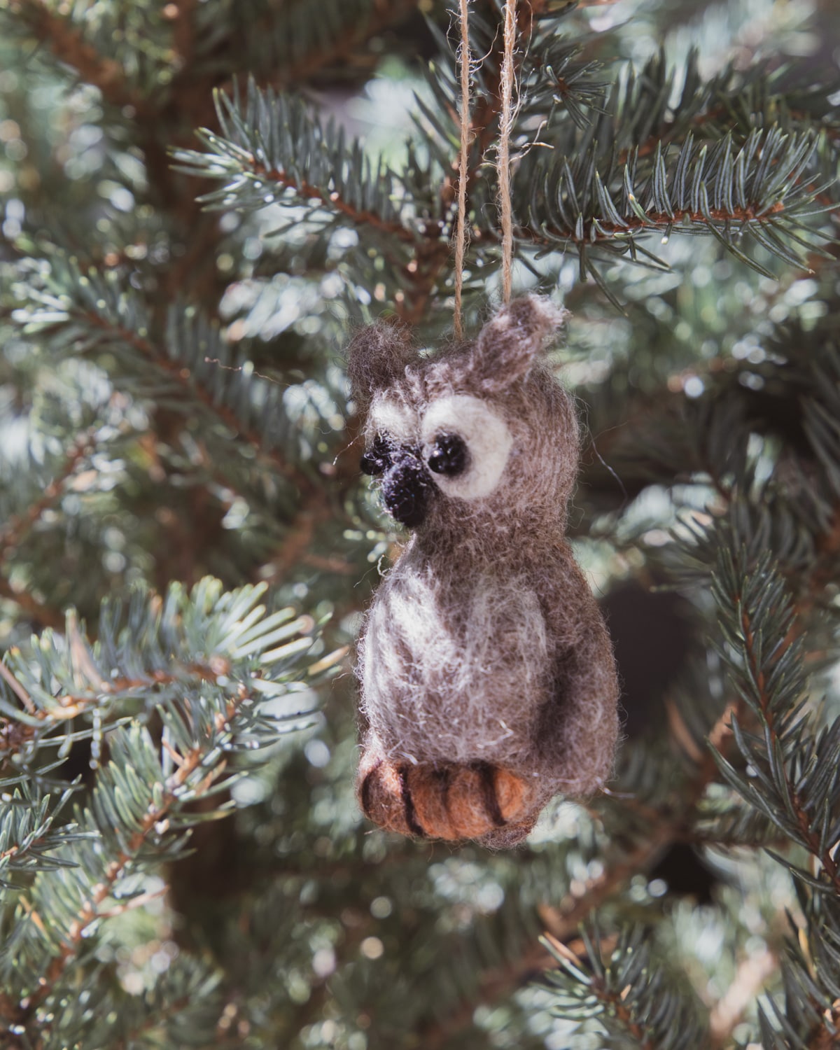 OWL FELT, Adorno de Navidad. buho de fieltro, medida: 9cm de alto x 5cm de ancho.Origen: Argentina
