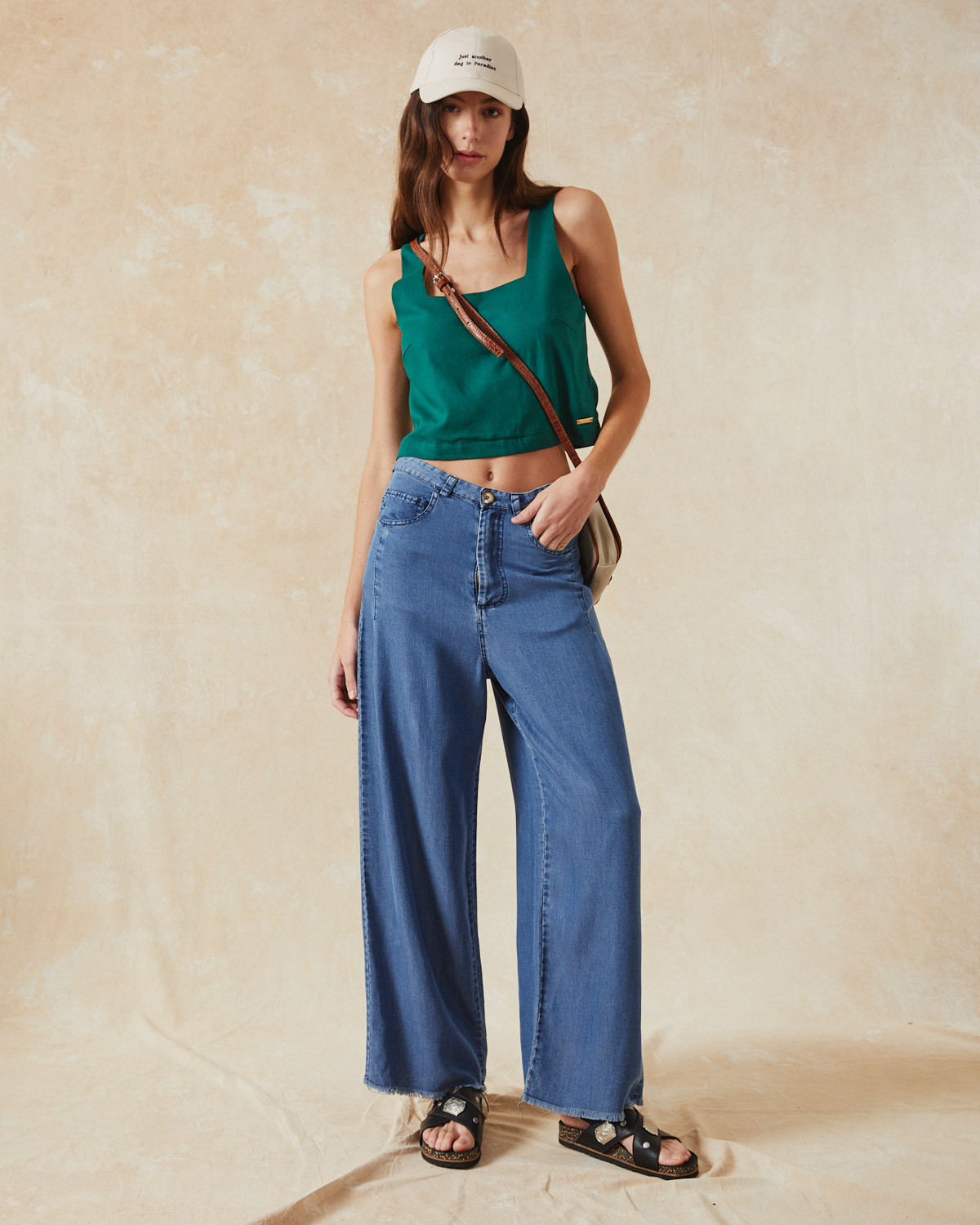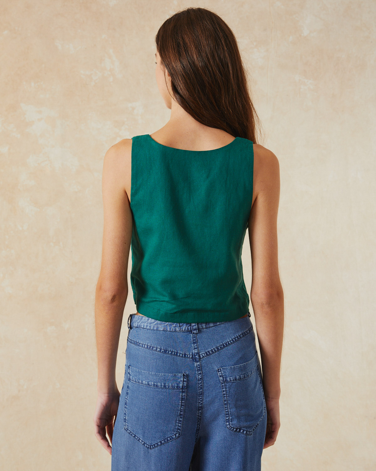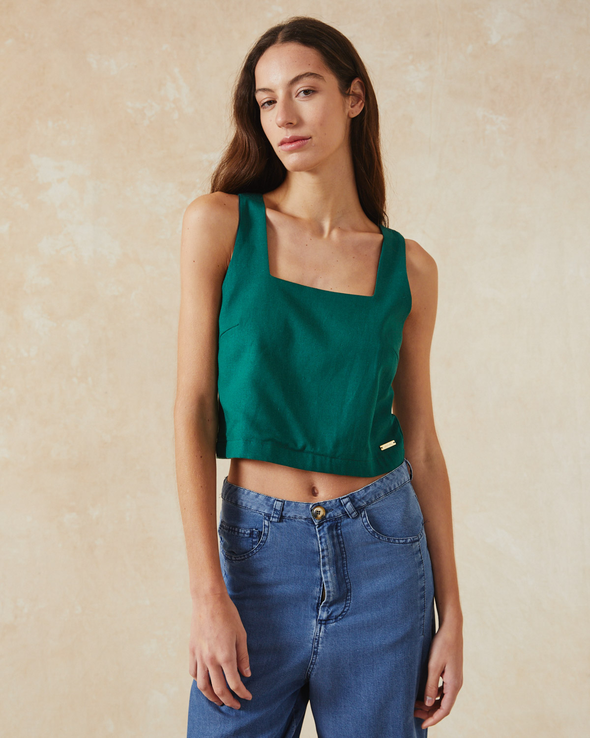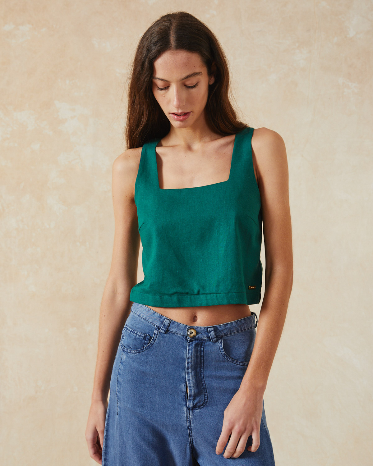 TOP DE CALCE AMPLIO CON ESCOTE CUADRADO CONFECCIONADO EN LINO.